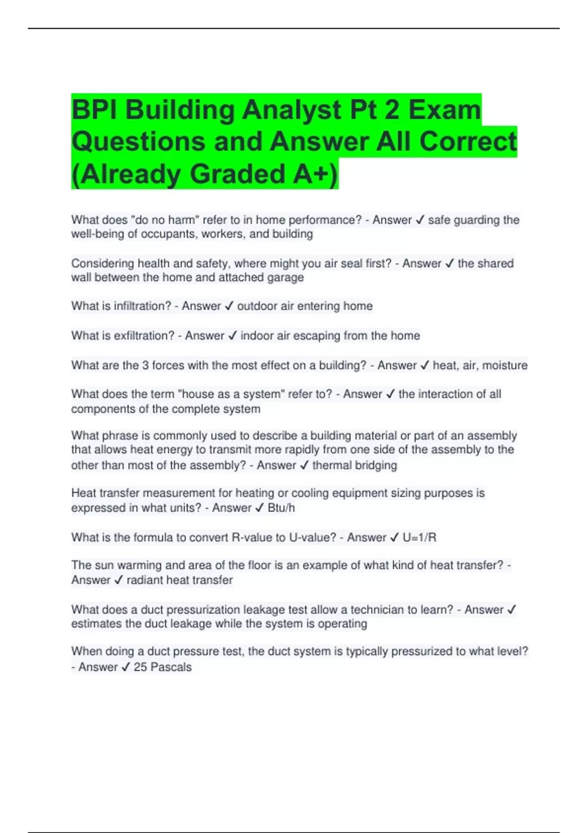 What is infiltration? - Answer ✔ outdoor air entering home