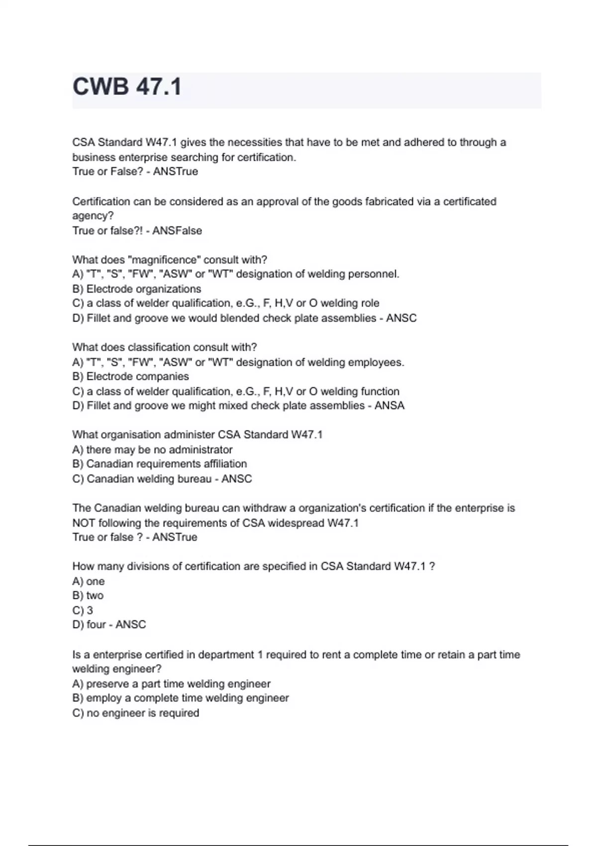 , D) rent a complete time welding inspector handiest - ANSB