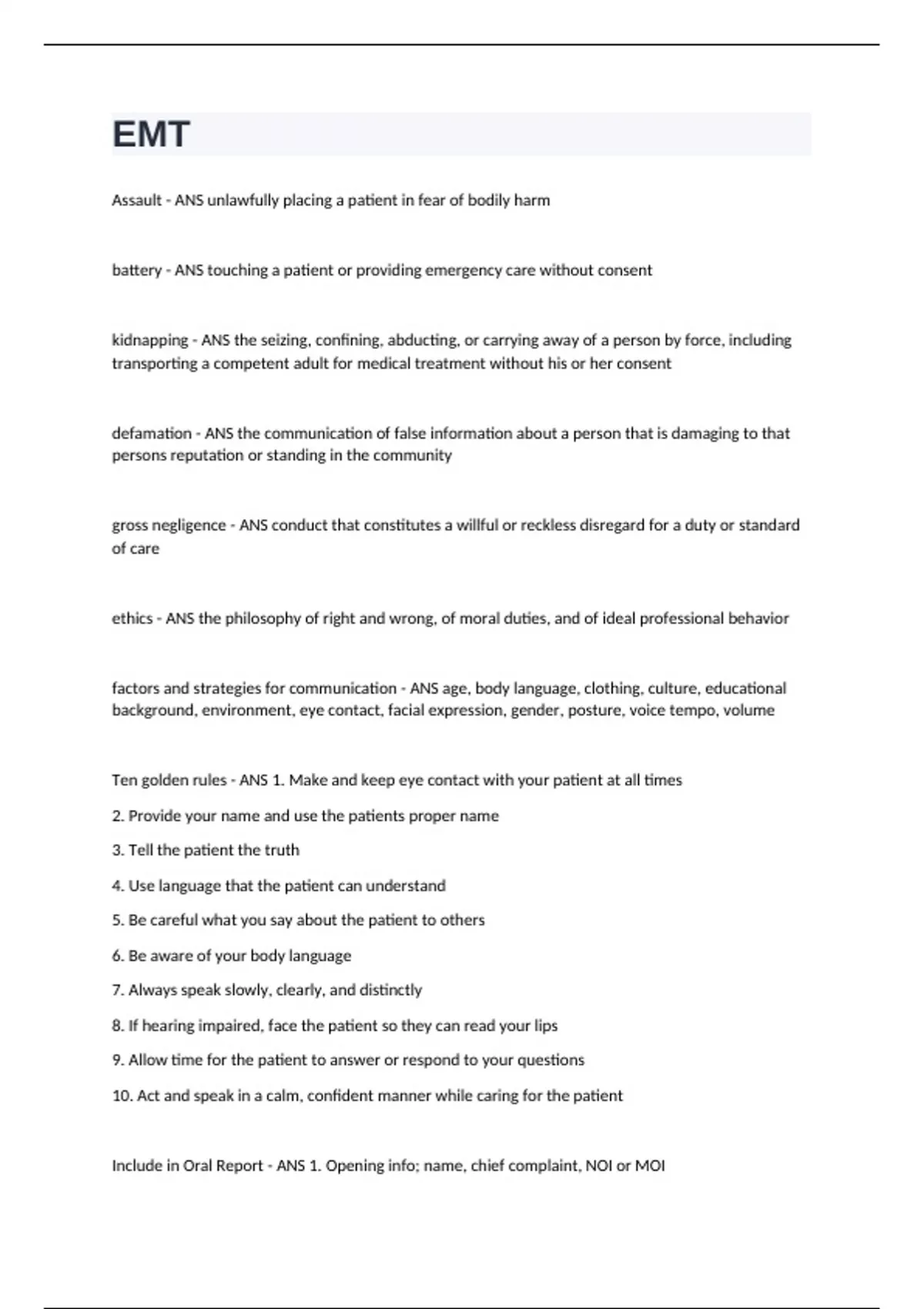 Patient care report - ANS legal document used to record all aspects of the care your patient received
