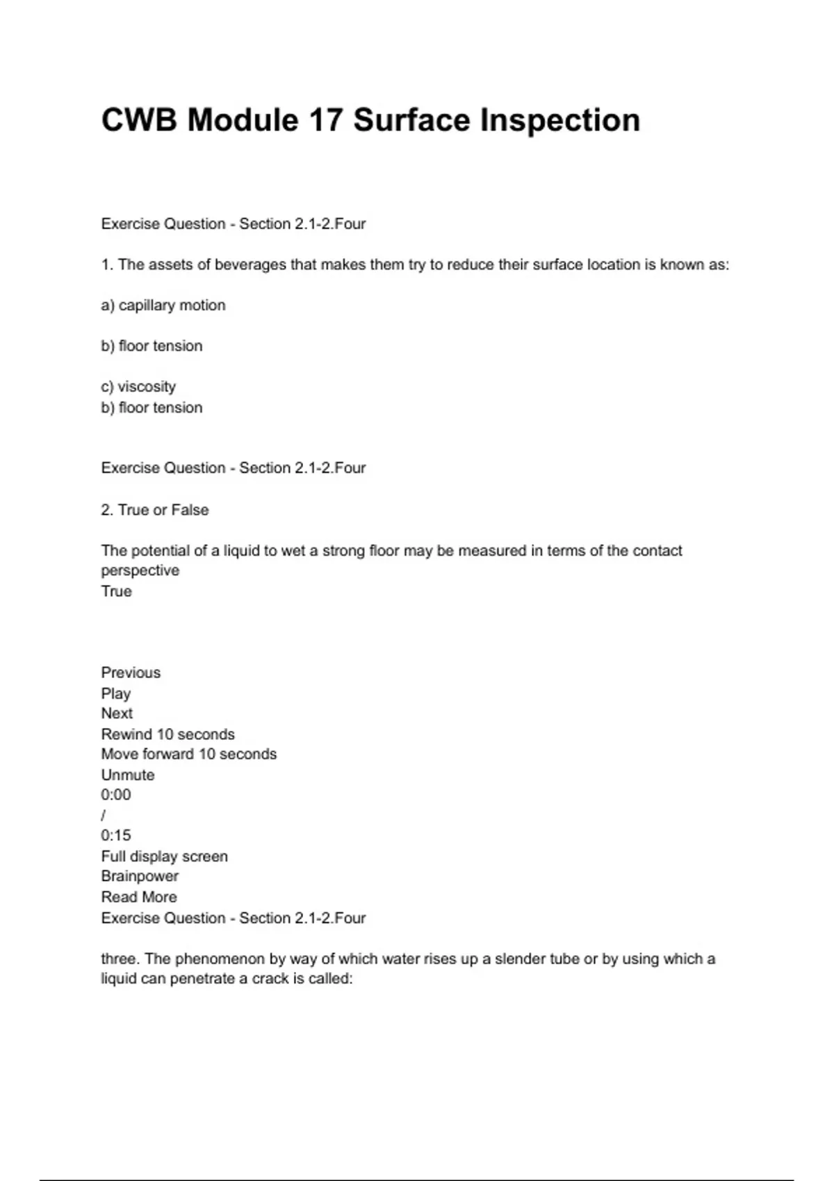 CWB Module 17 Surface Inspection QUESTIONS AND ANSWERS RATED A+ 2024/2025