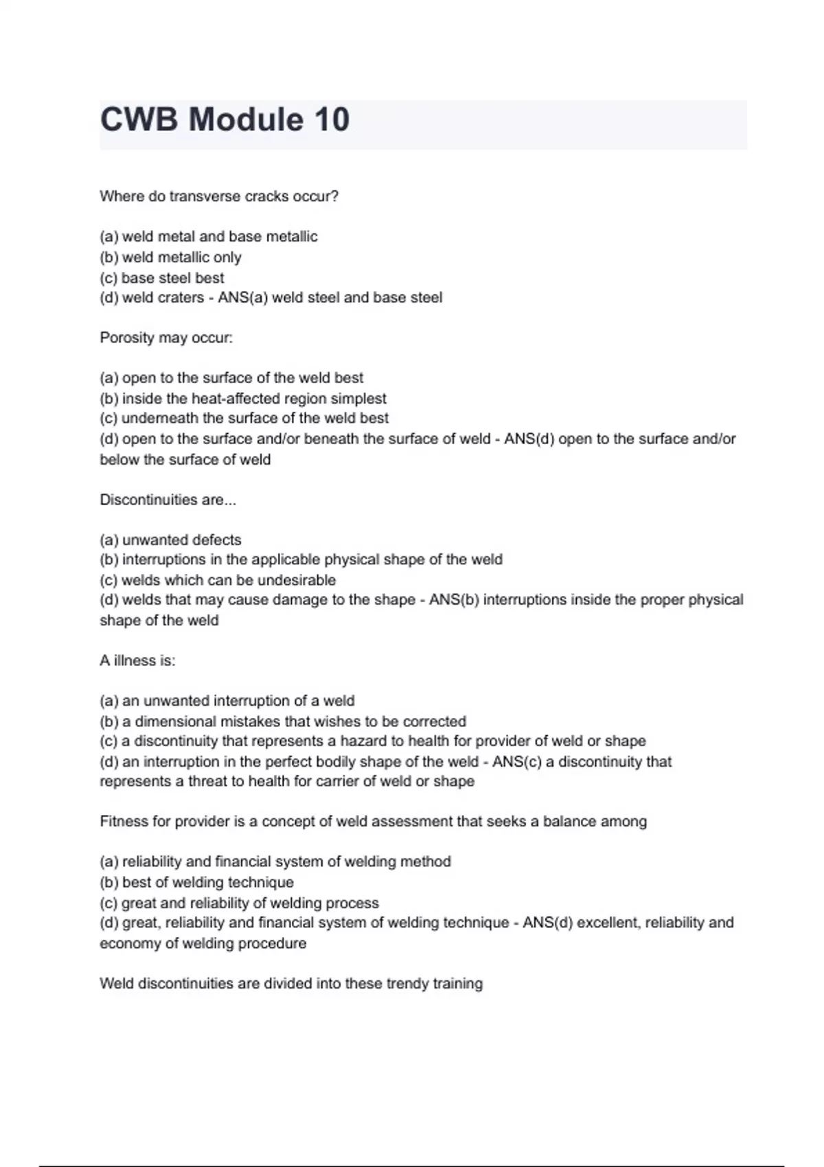 (d) an interruption in the perfect bodily shape of the weld - ANS(c) a discontinuity that