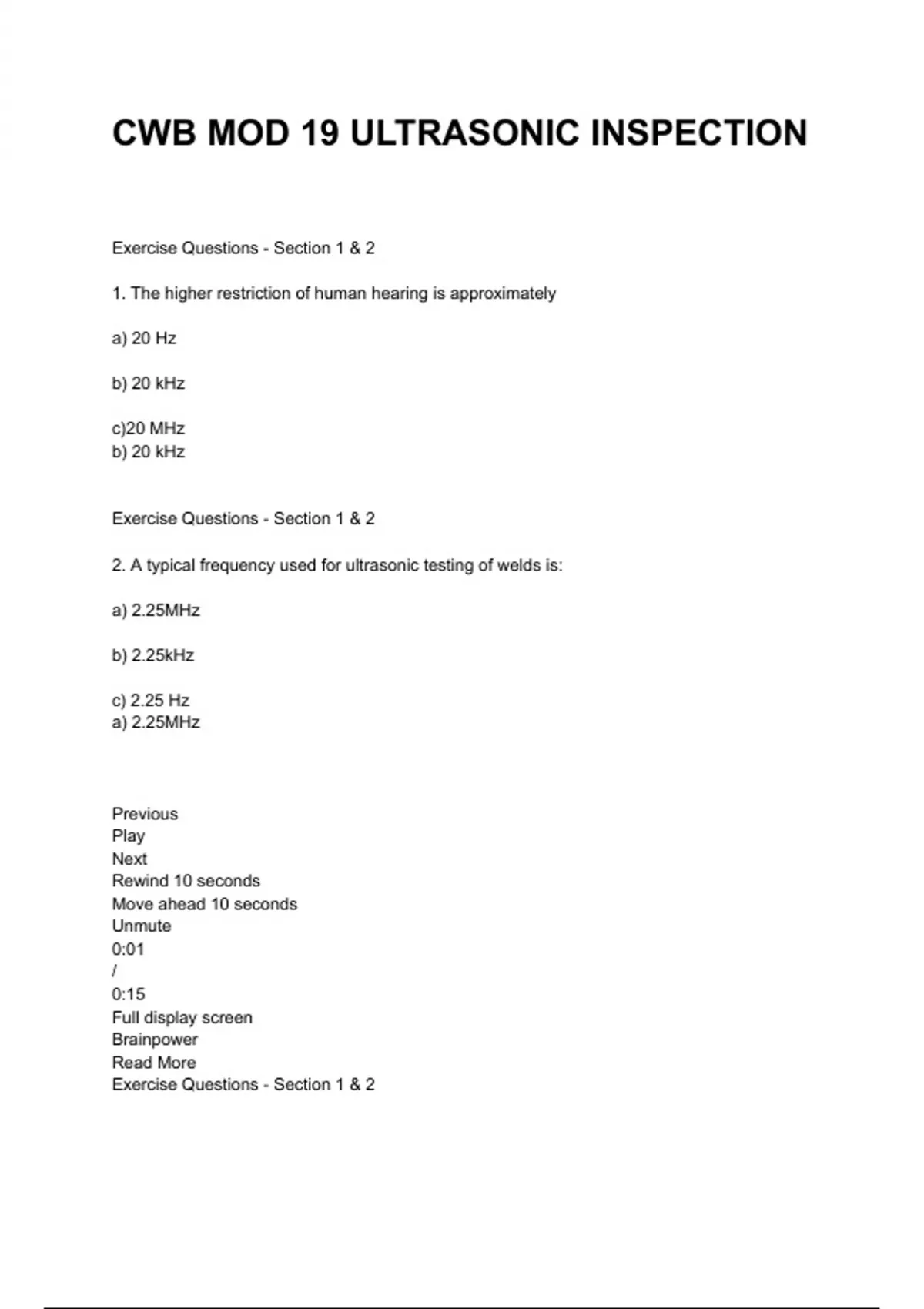 2. A typical frequency used for ultrasonic testing of welds is: