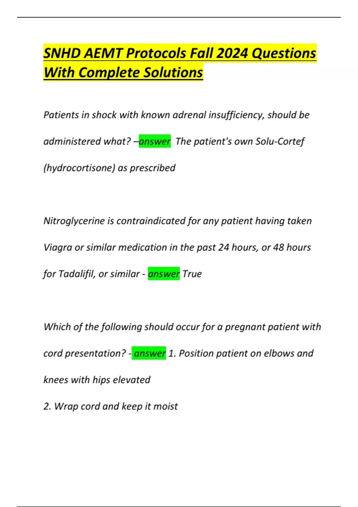 cord presentation? - answer 1. Position patient on elbows and