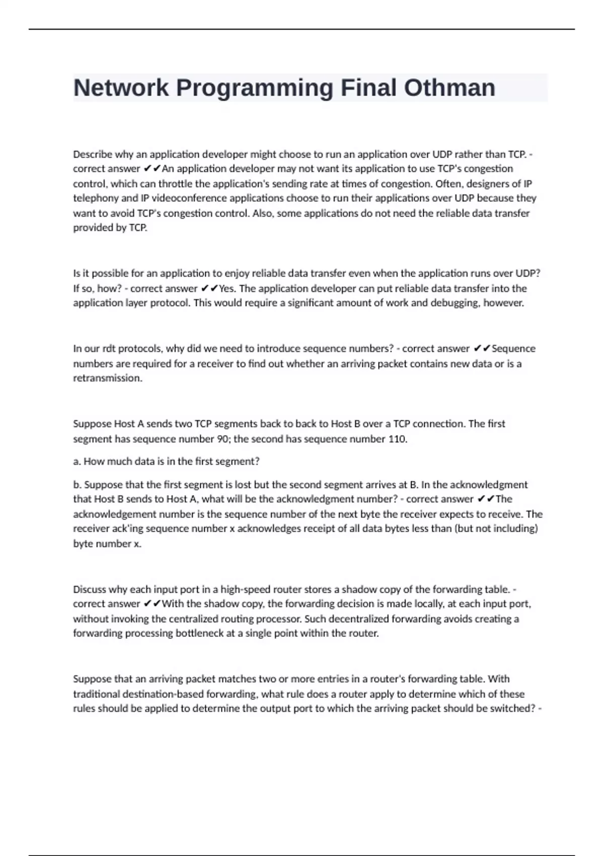 the datagram) to TCP rather than to UDP or to some other upper-layer protocol - correct answer ✔✔The