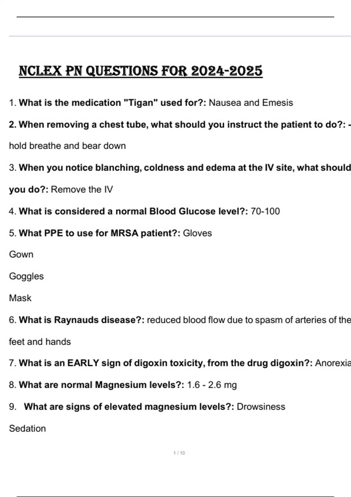 9. What are signs of elevated magnesium levels?: Drowsiness