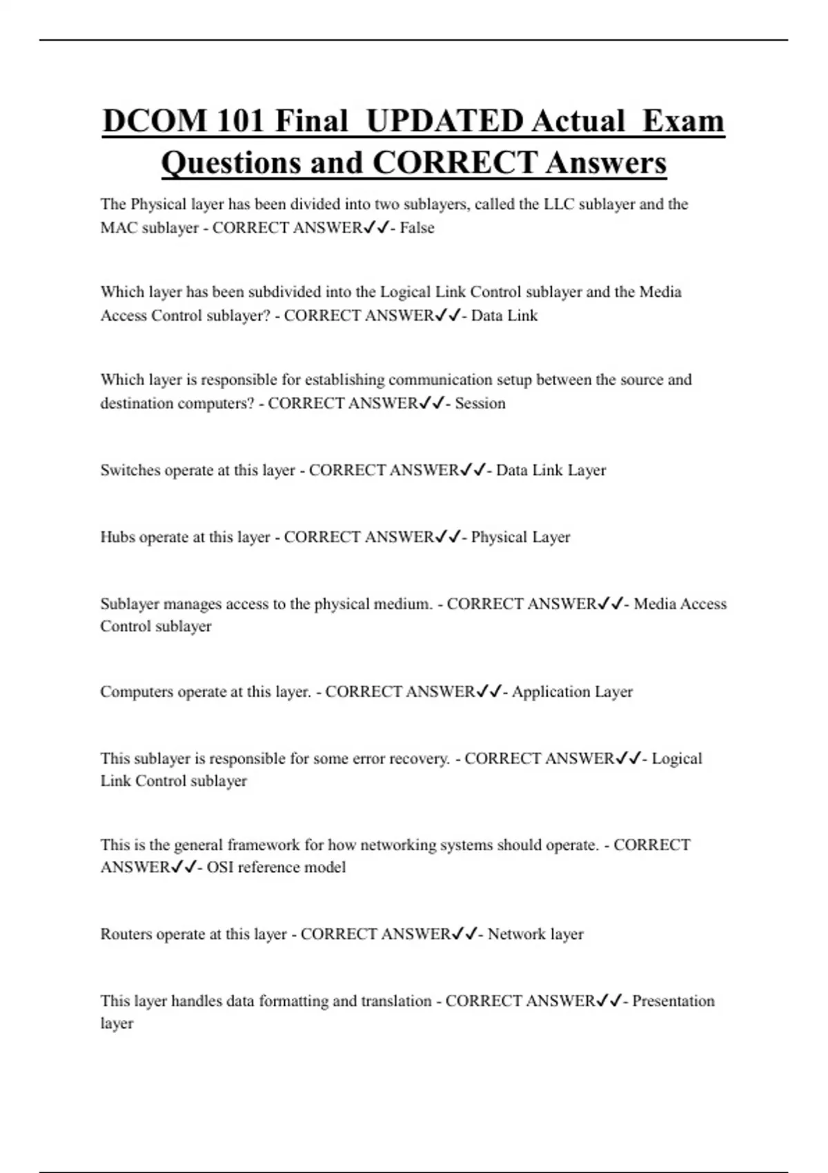 Sublayer manages access to the physical medium. - CORRECT ANSWER✔✔- Media Access