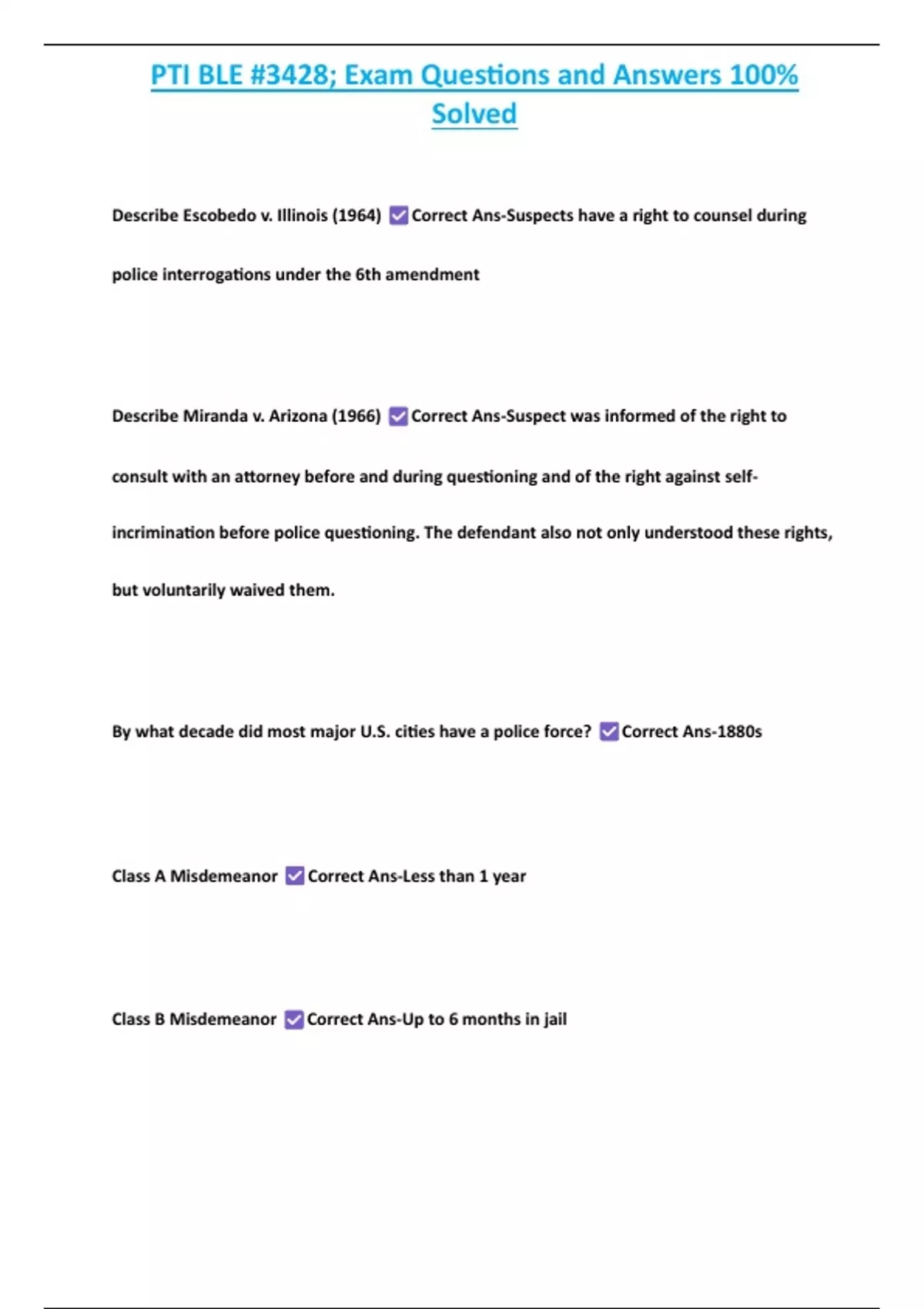 , PTI BLE #3428; Exam Questions and Answers 100%