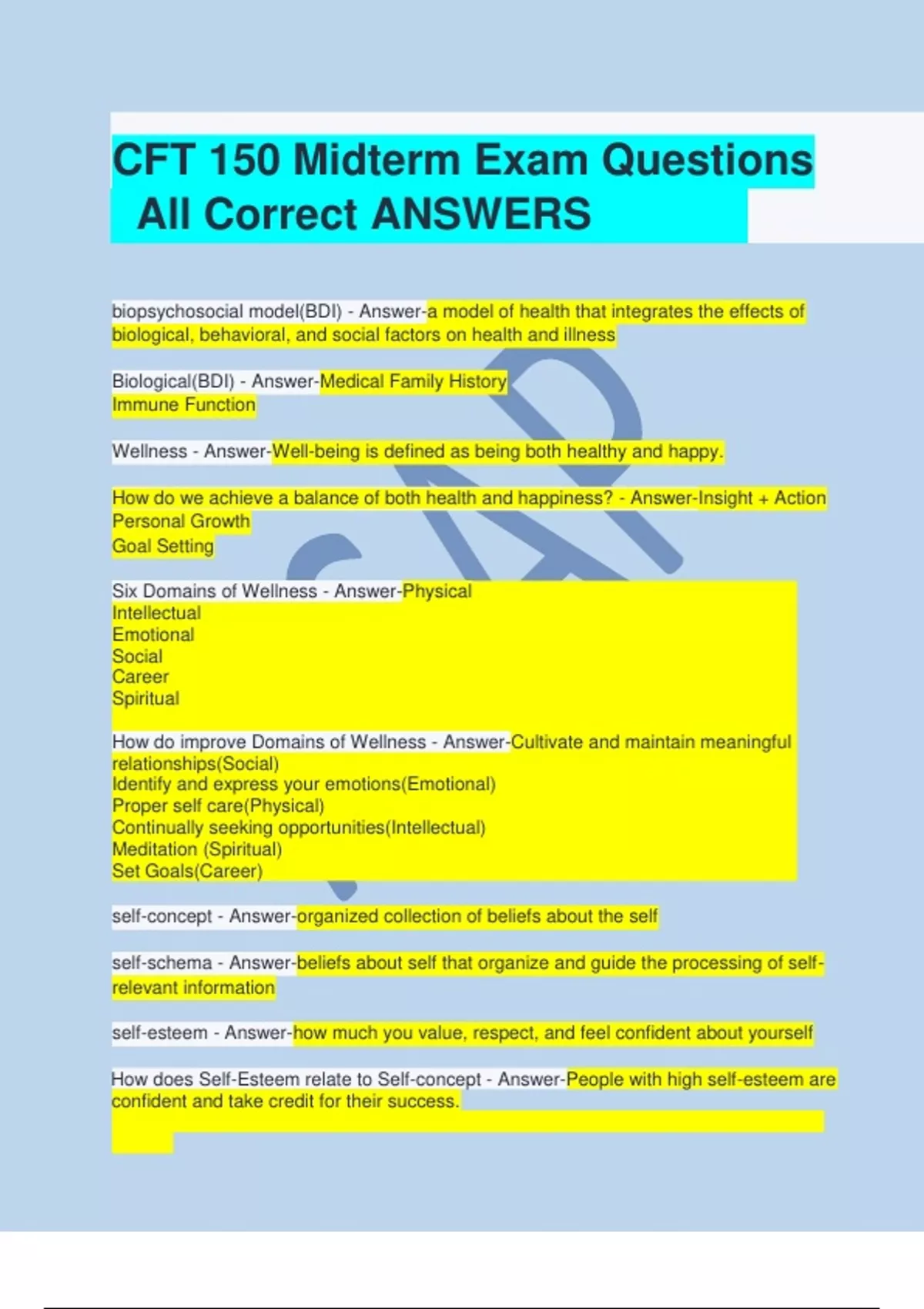 CFT 150 Midterm Exam Questions