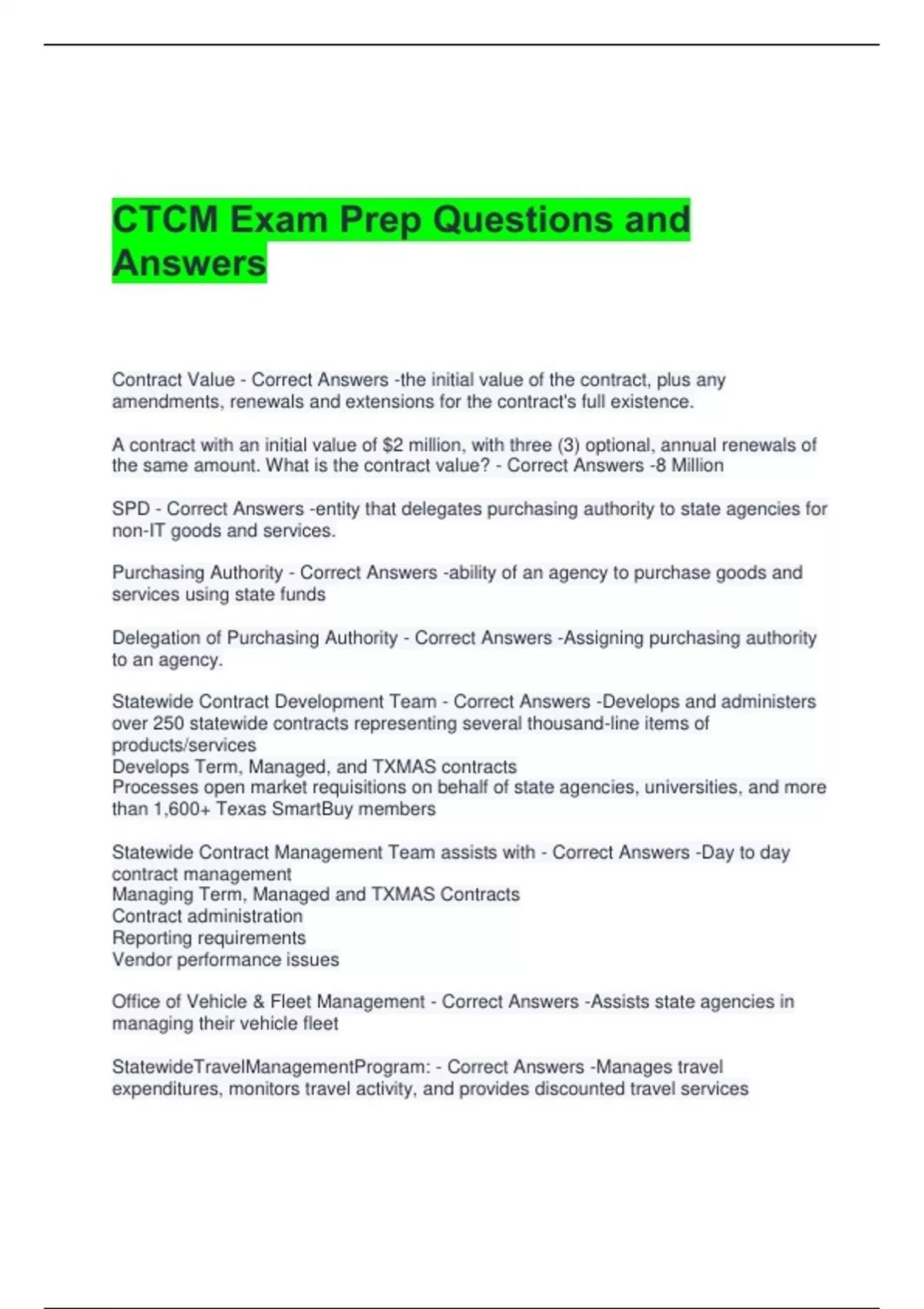 CTCM Exam Prep Questions and