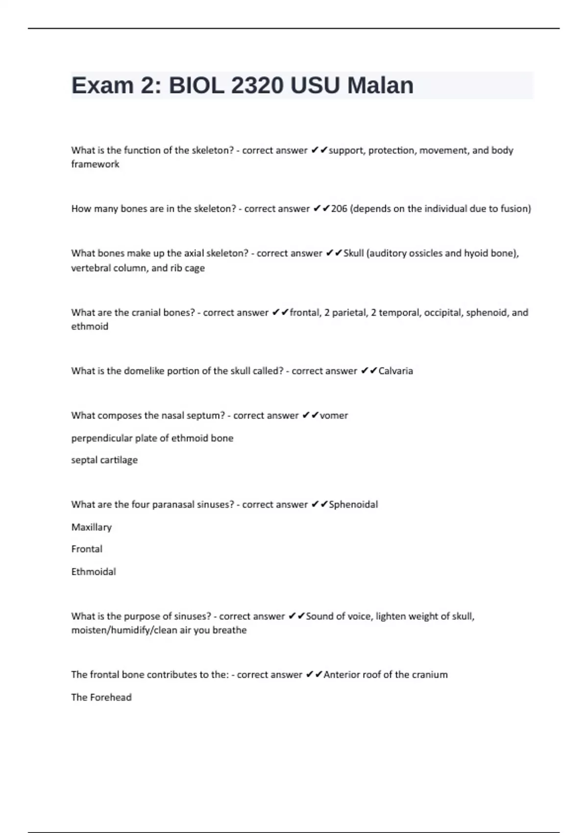 How many bones are in the skeleton? - correct answer ✔✔206 (depends on the individual due to fusion)