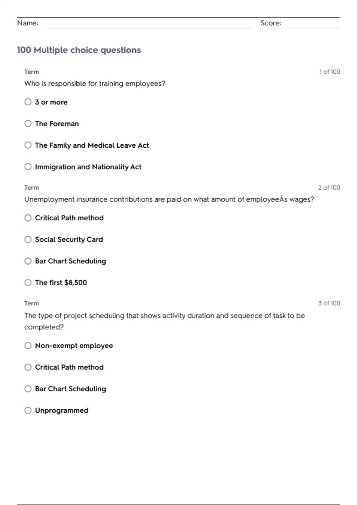 100 Multiple choice questions