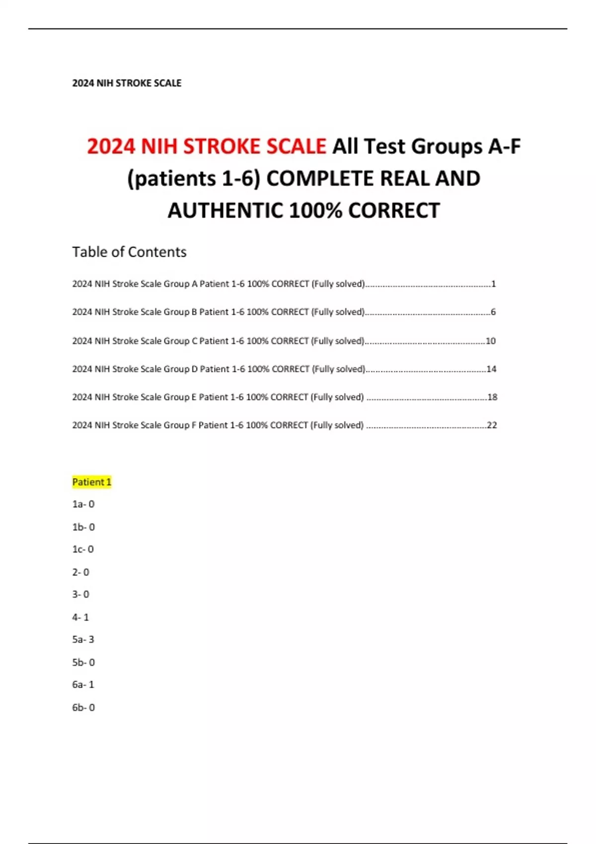 2024 NIH Stroke Scale Group A Patient 1-6 100% CORRECT (Fully solved)..................................................1