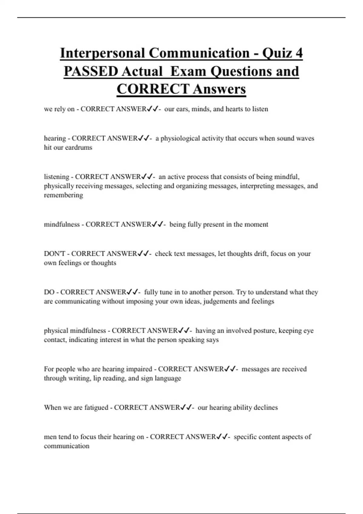 listening - CORRECT ANSWER✔✔- an active process that consists of being mindful,