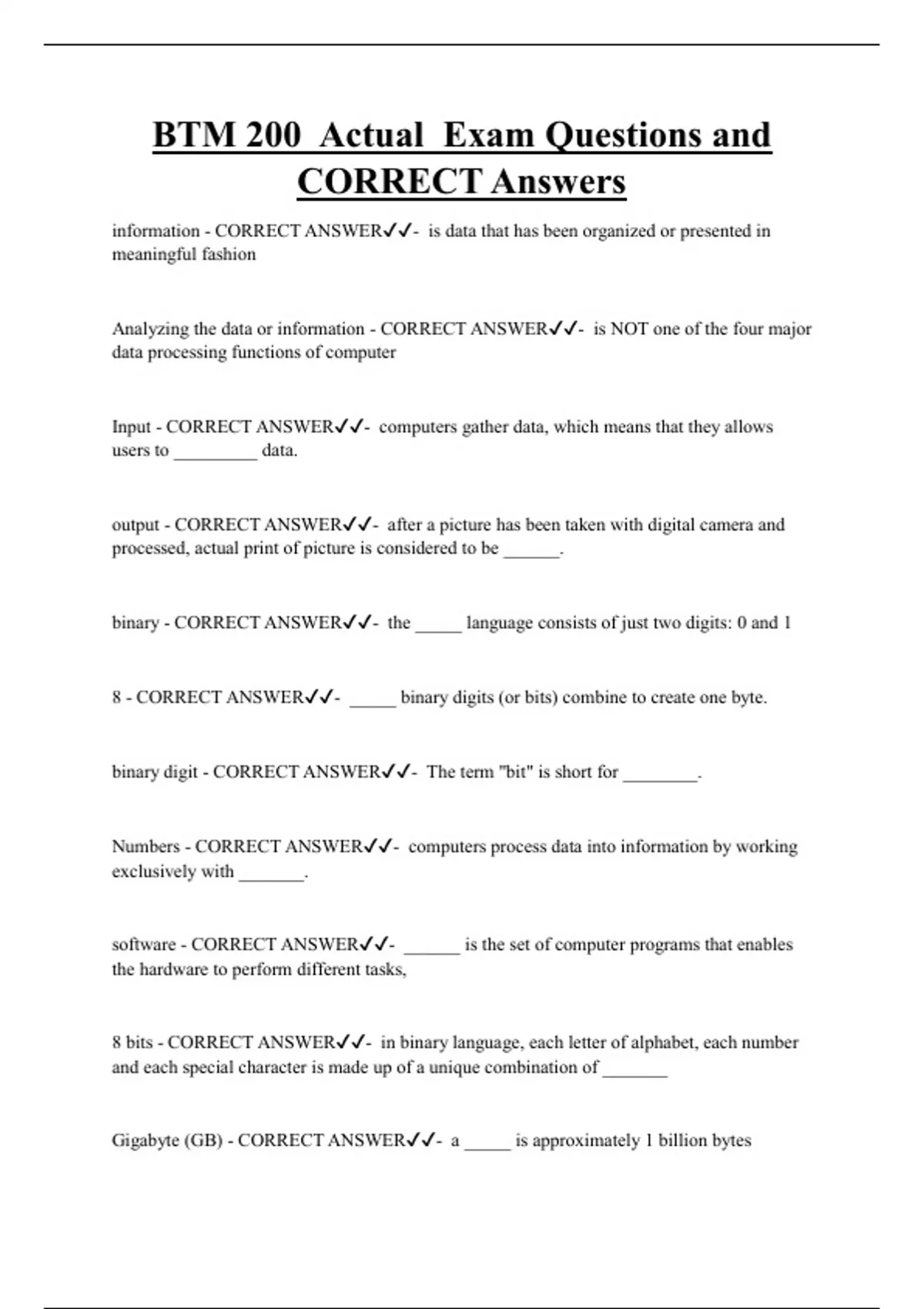 binary digit - CORRECT ANSWER✔✔- The term "bit" is short for ________.
