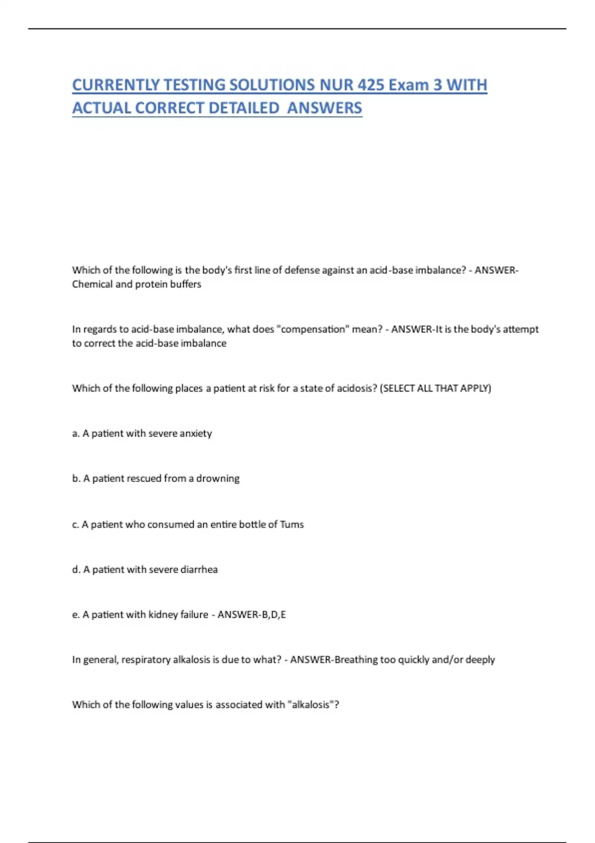 Acid Base Imbalance - ANSWER-just a symptom of disease- not a disease itself