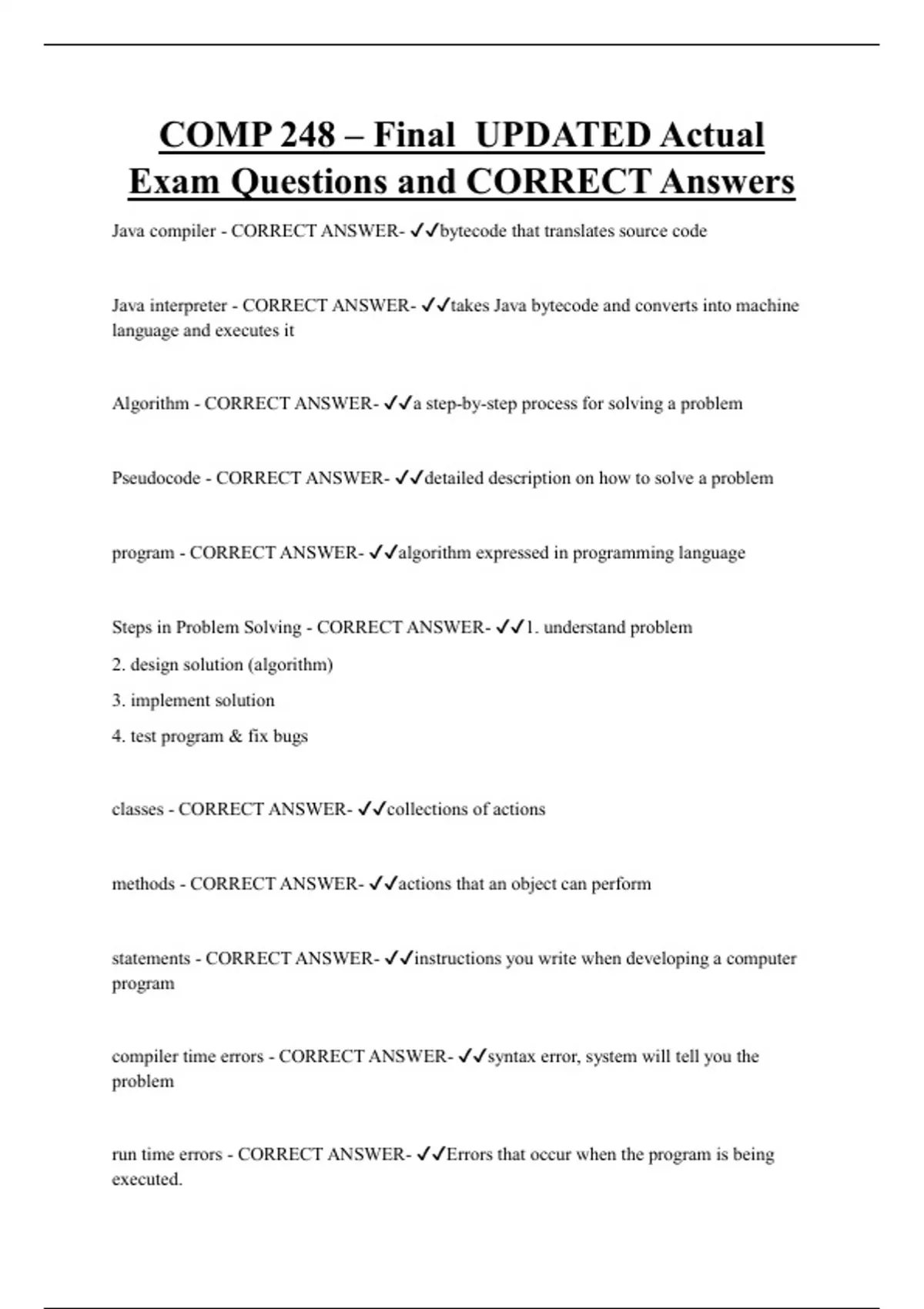 Steps in Problem Solving - CORRECT ANSWER- ✔✔1. understand problem