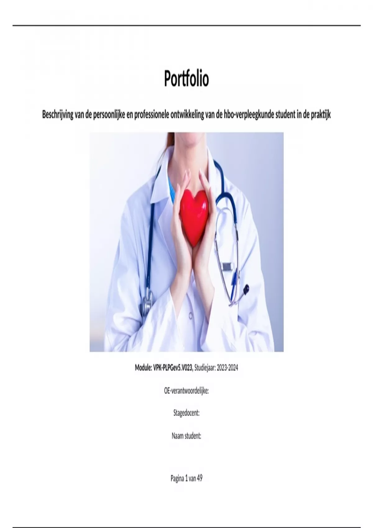 Beschrijving van de persoonlijke en professionele ontwikkeling van de hbo-verpleegkunde student in de praktijk