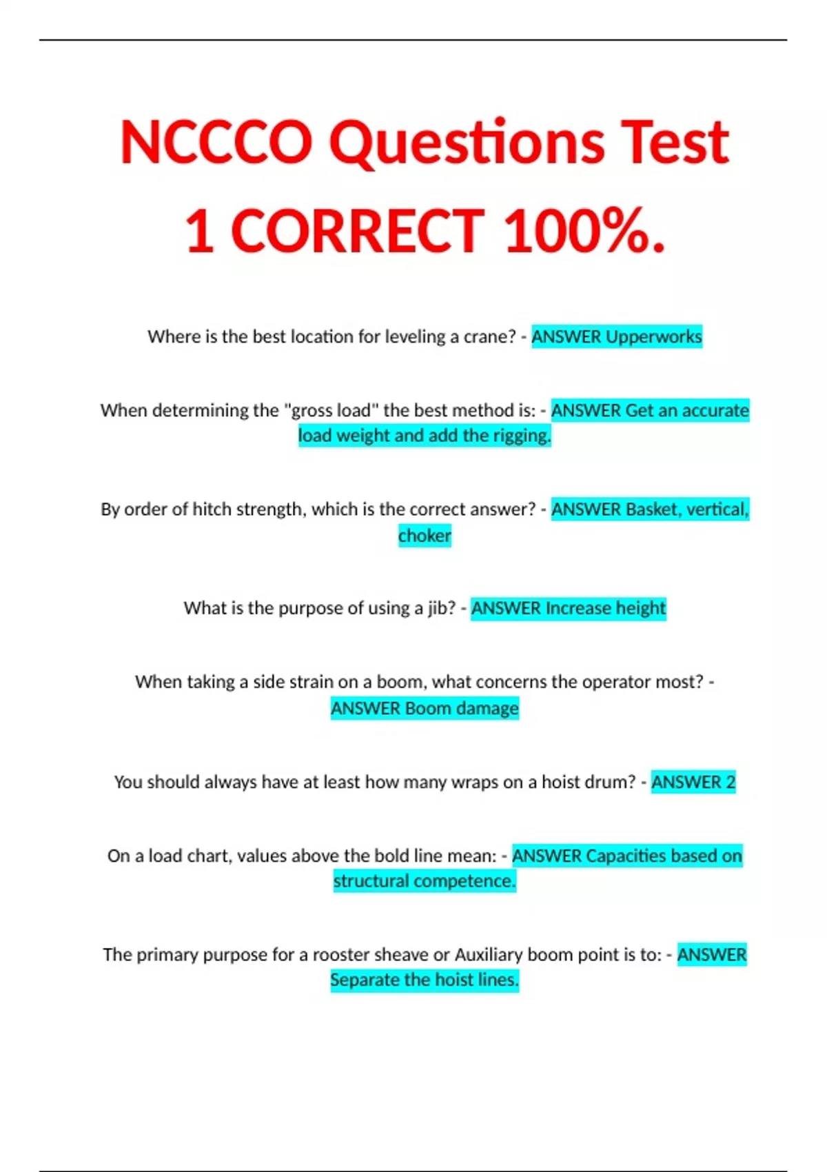 NCCCO Questions Test 1 CORRECT 100%.