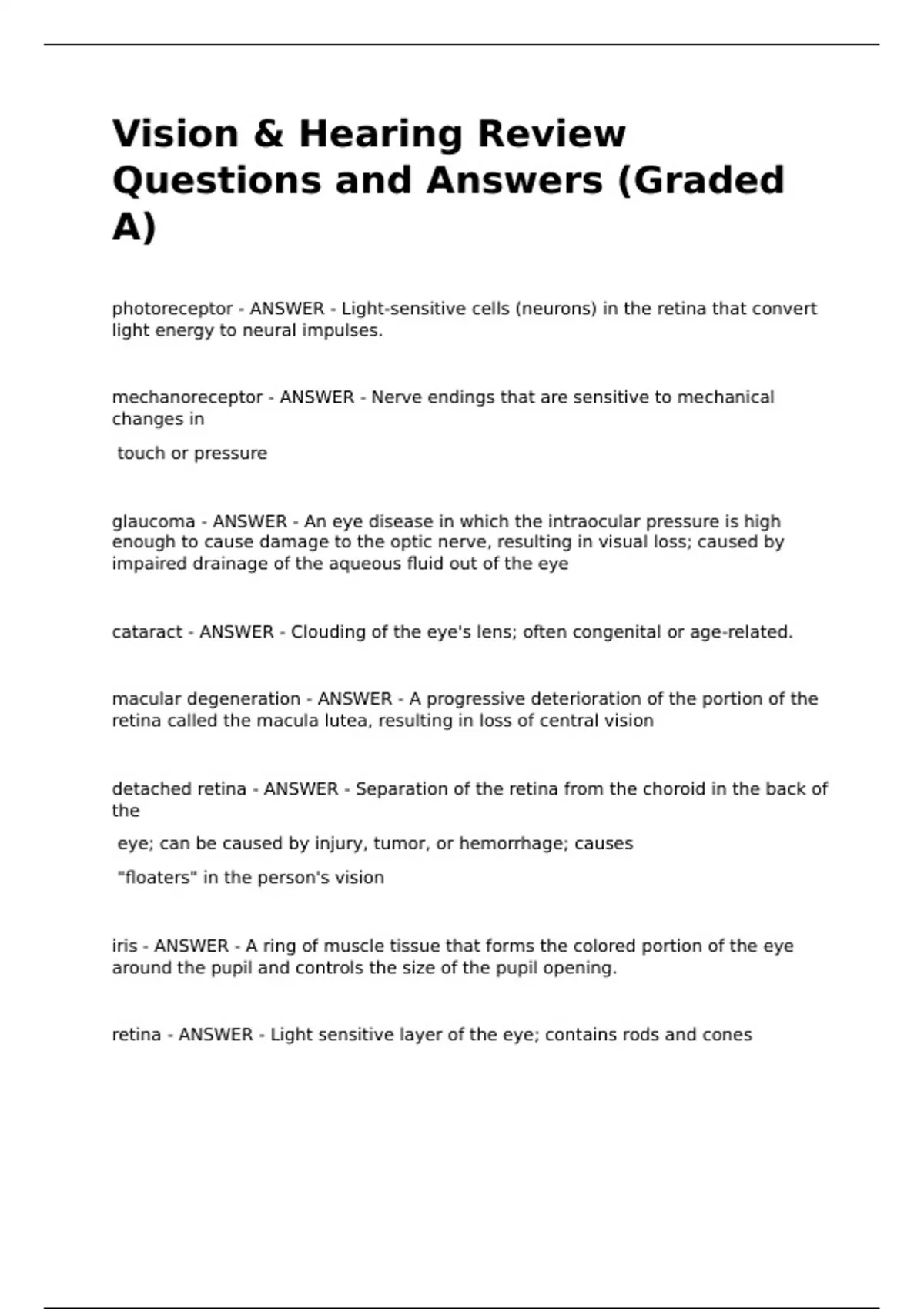 retina - ANSWER - Light sensitive layer of the eye; contains rods and cones