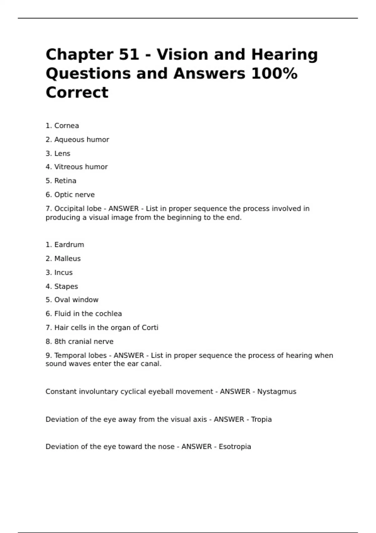 9. Temporal lobes - ANSWER - List in proper sequence the process of hearing when