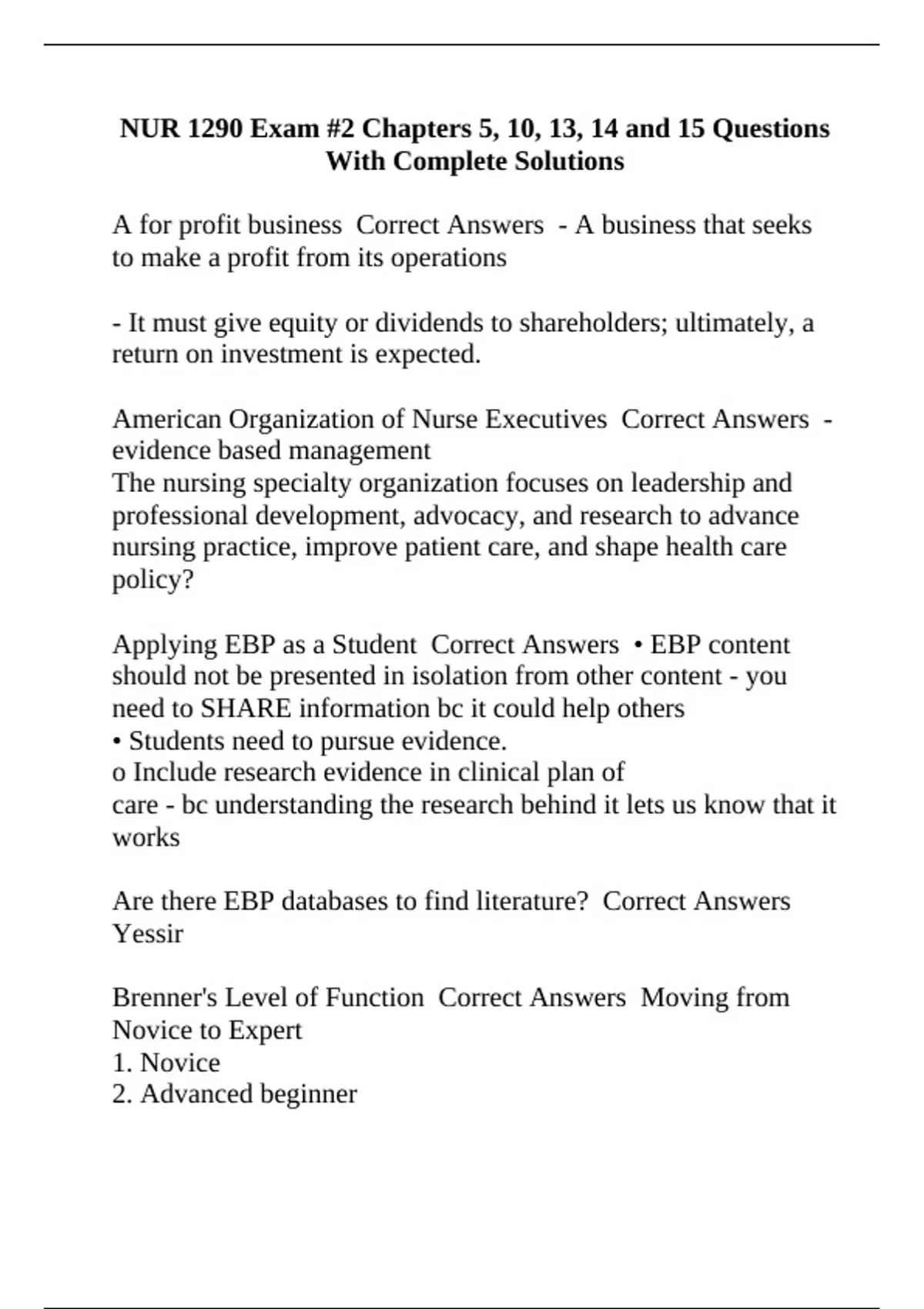 EBP Correct Answers Evidence Based Practice