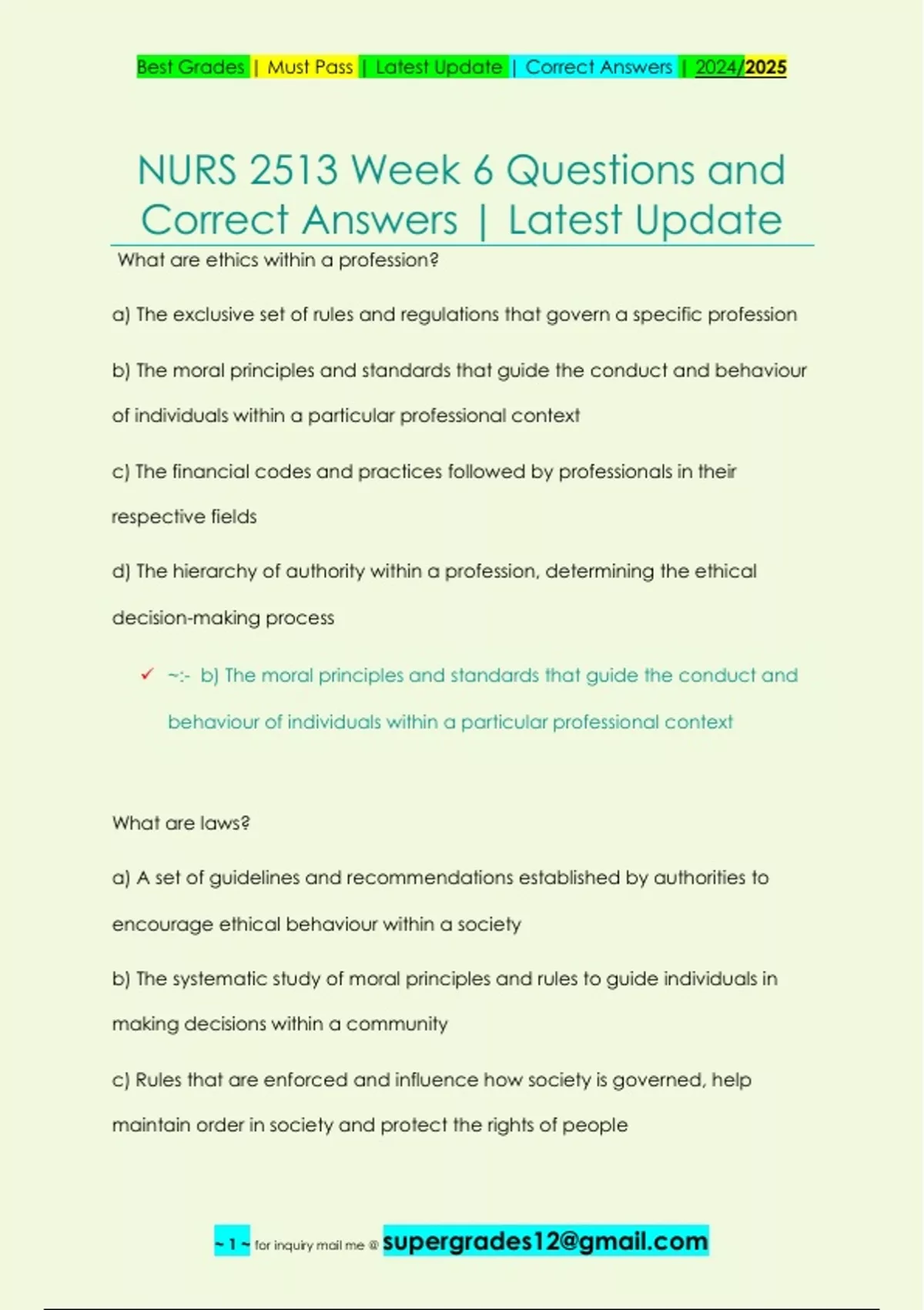 , Best Grades | Must Pass | Latest Update | Correct Answers | 2024/2025
