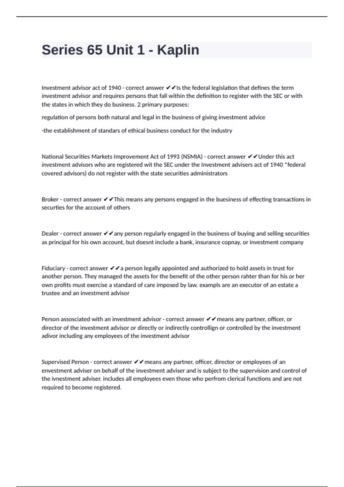 Broker - correct answer ✔✔This means any persons engaged in the buesiness of effecting transactions in