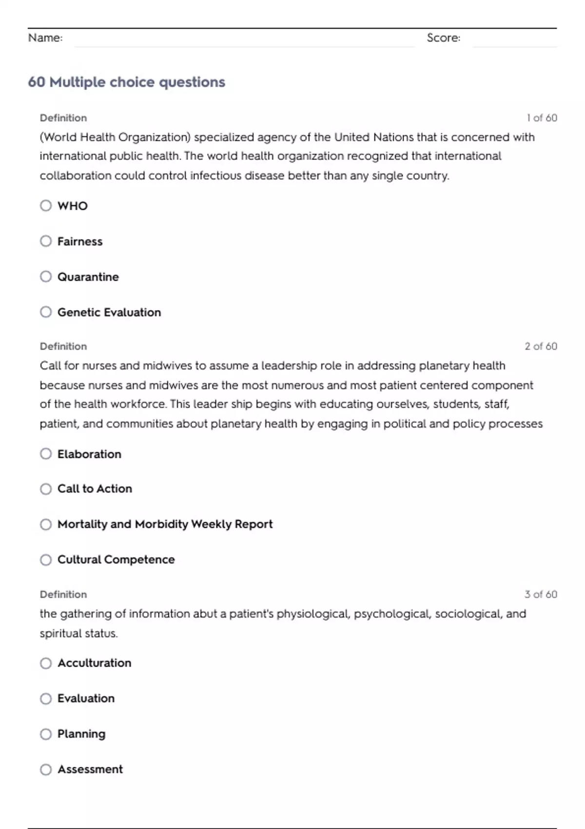 Name: Score: