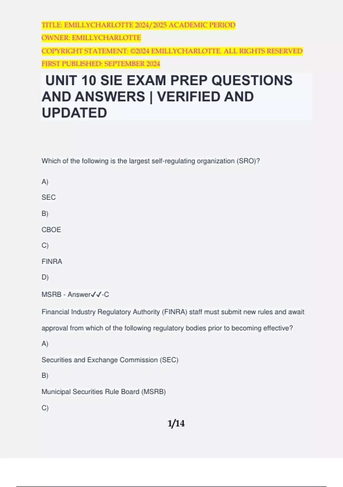 UNIT 10 SIE EXAM PREP QUESTIONS