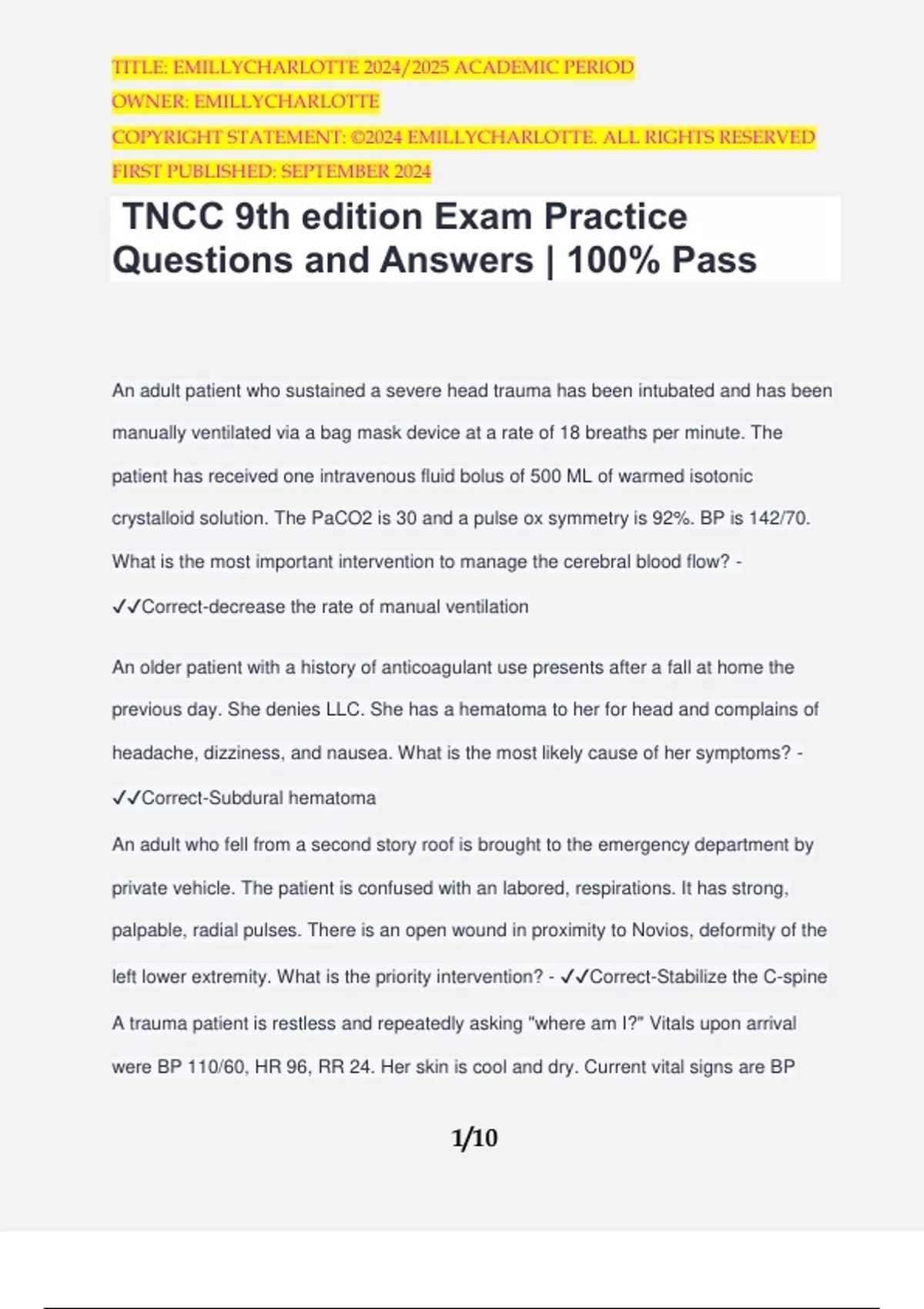 TNCC 9th edition Exam Practice