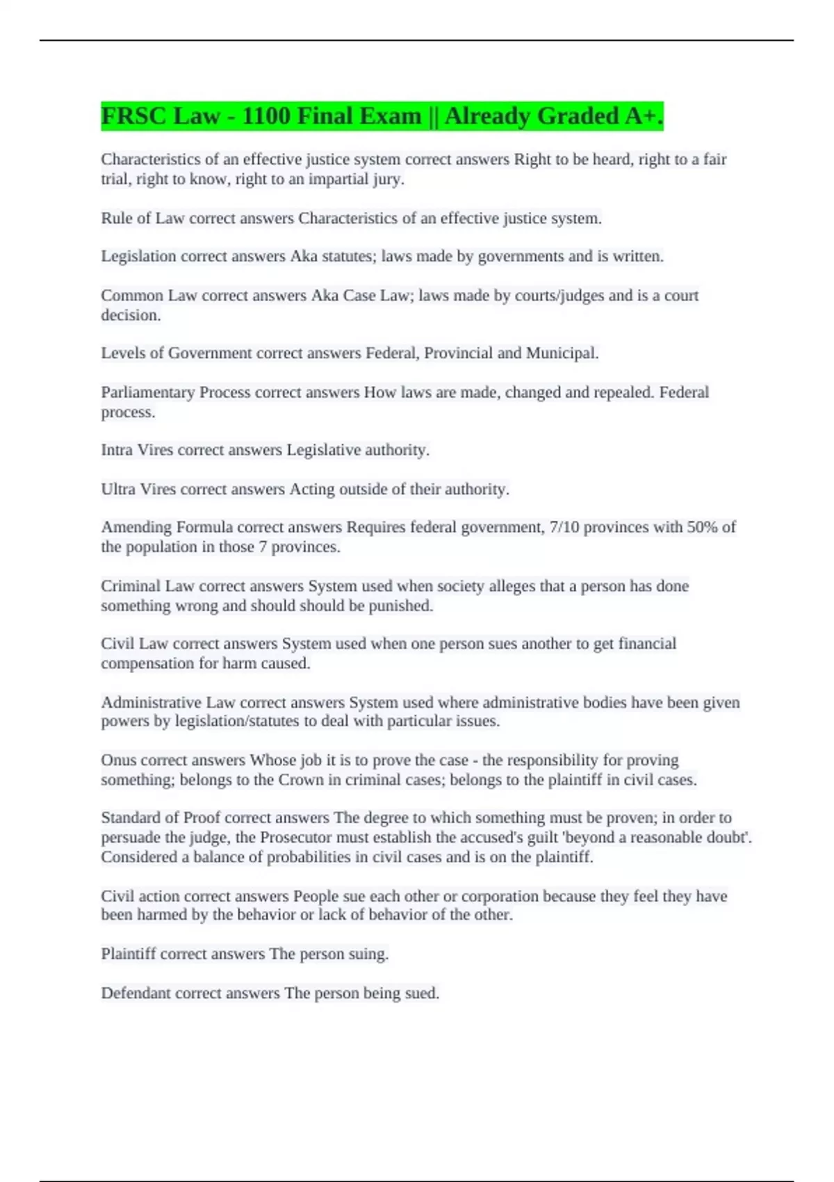 Legislation correct answers Aka statutes; laws made by governments and is written.