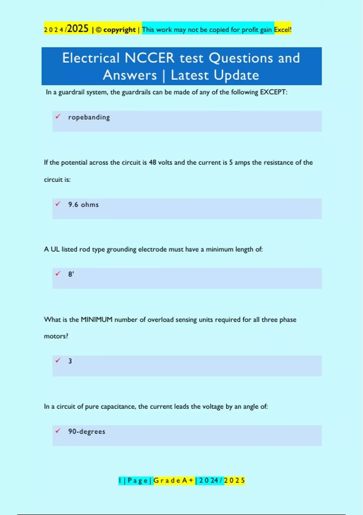, 2024/ 2025 | © copyright | This work may not be copied for profit gain Excel!