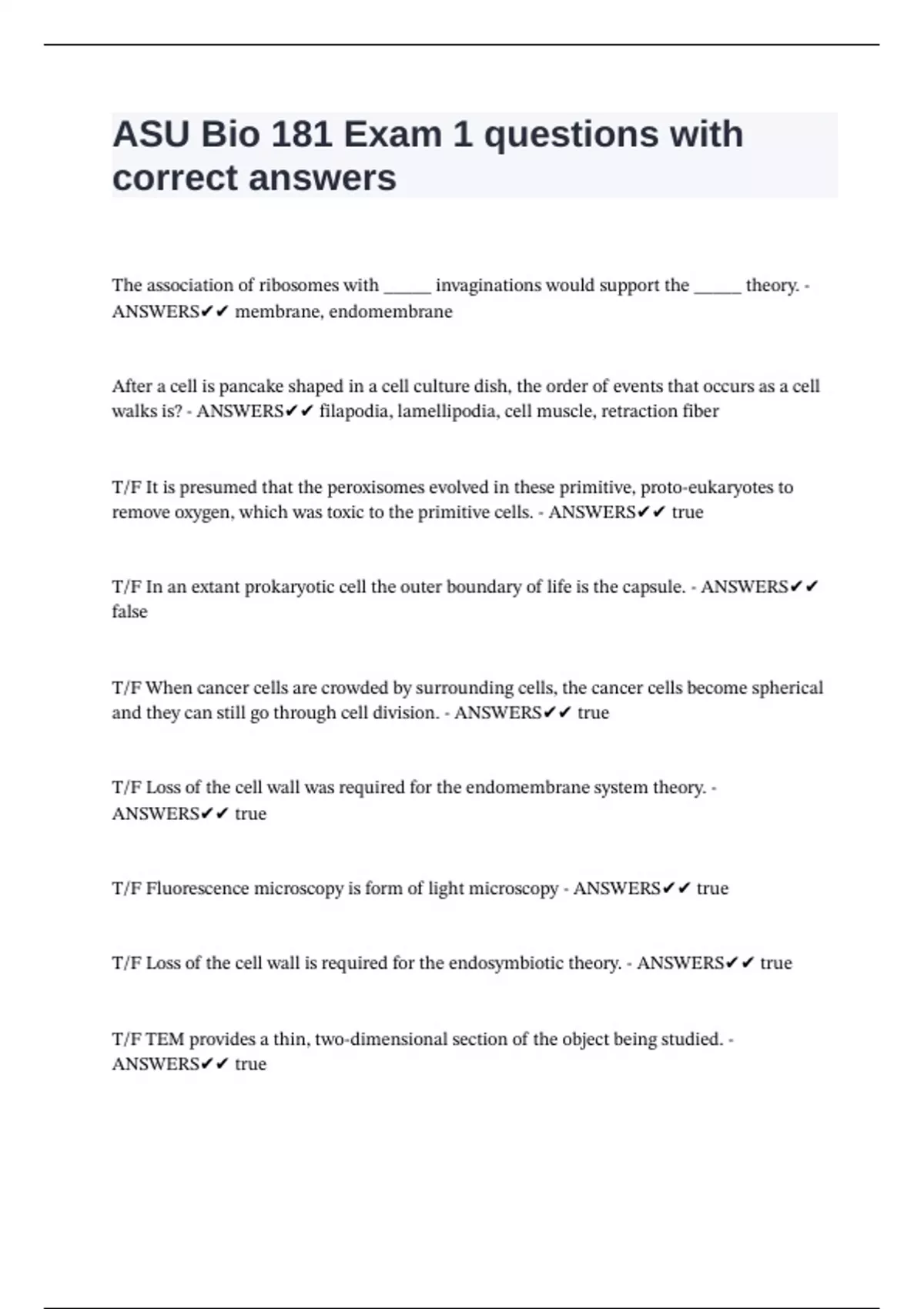 T/F Loss of the cell wall is required for the endosymbiotic theory. - ANSWERS✔✔ true