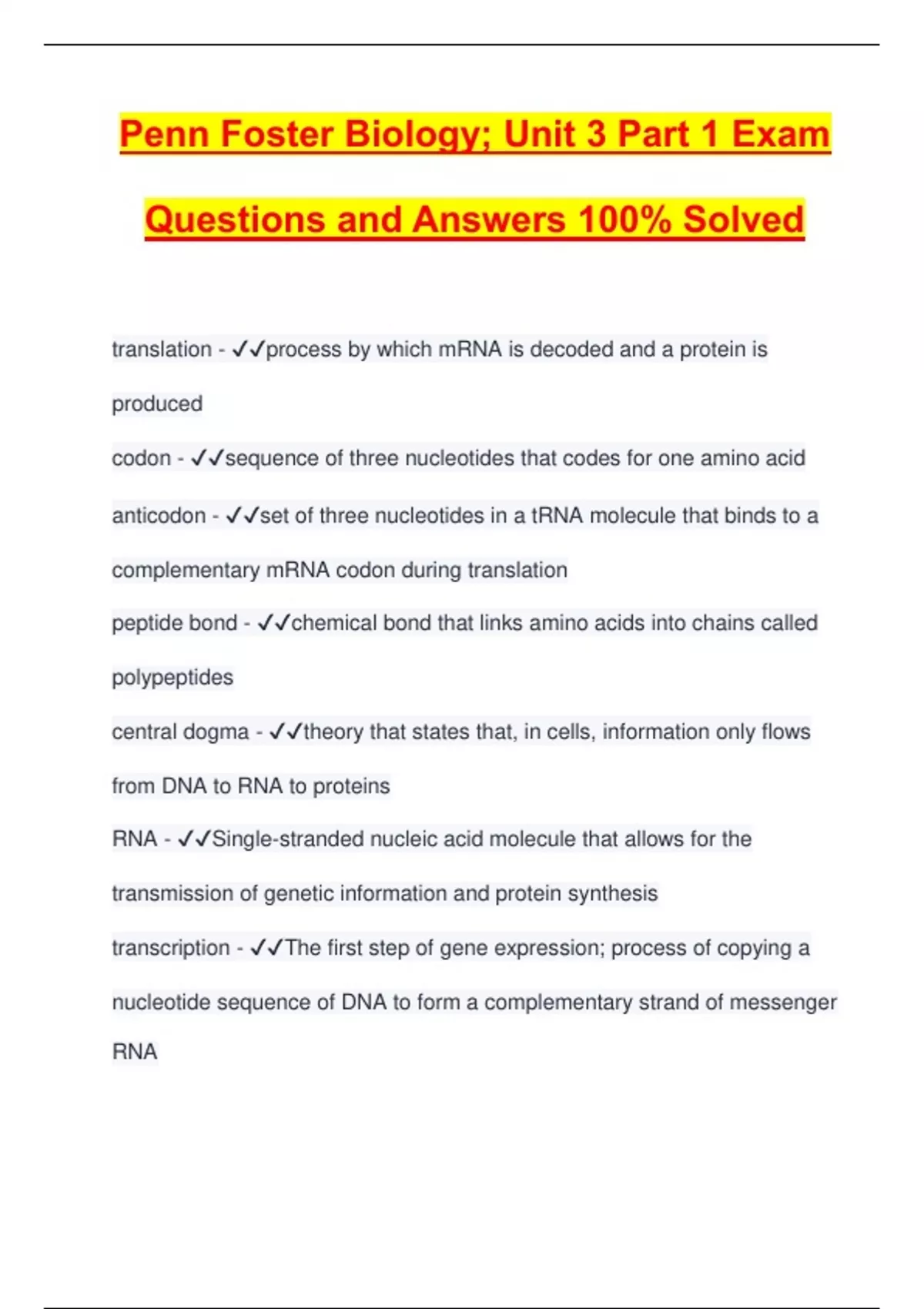Questions and Answers 100% Solved