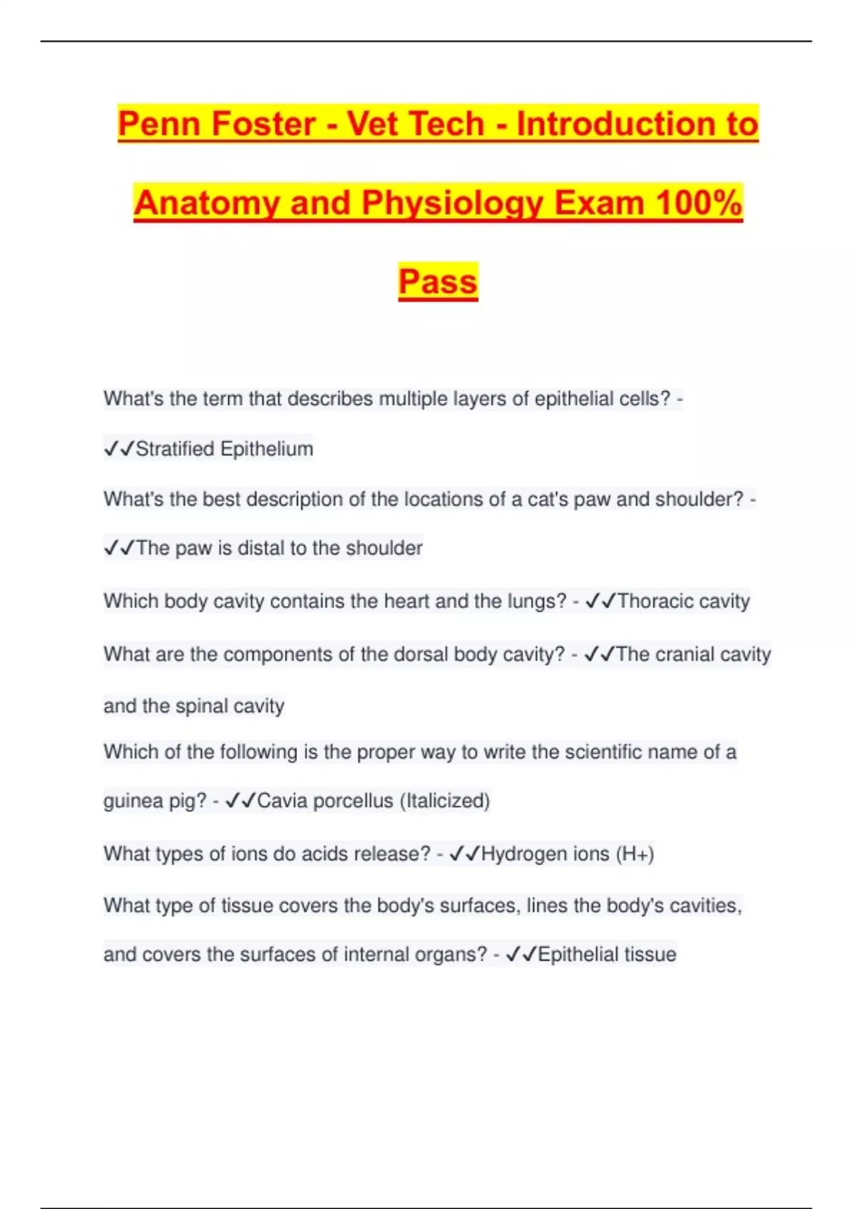 Anatomy and Physiology Exam 100%