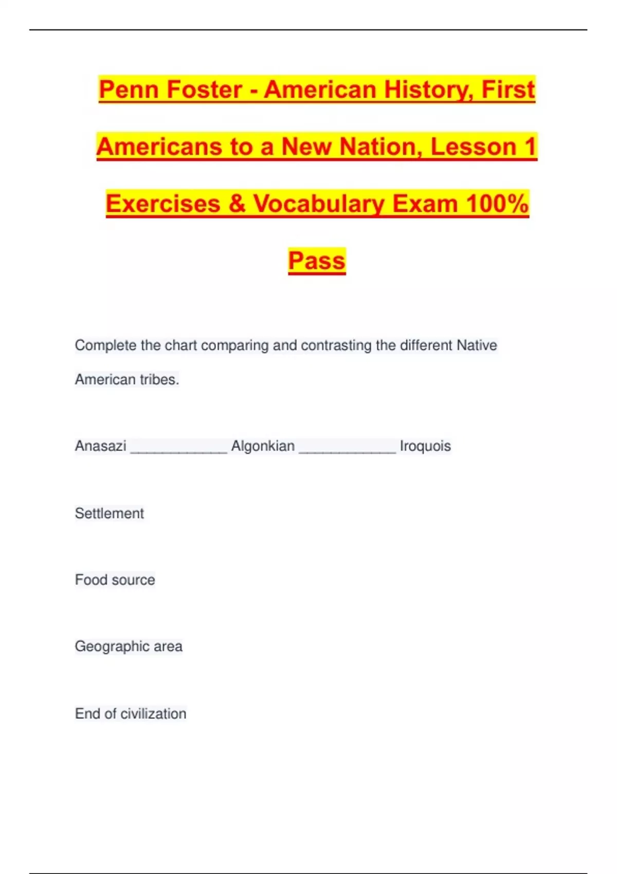 Complete the chart comparing and contrasting the different Native
