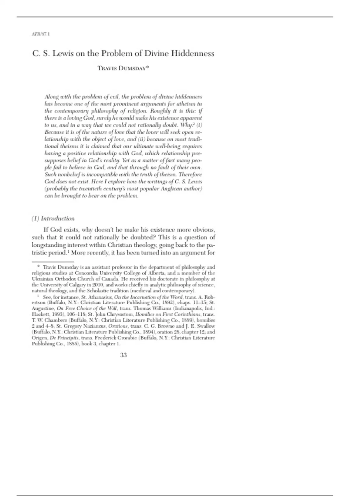 , C. S. Lewis on Divine Hiddenness 35