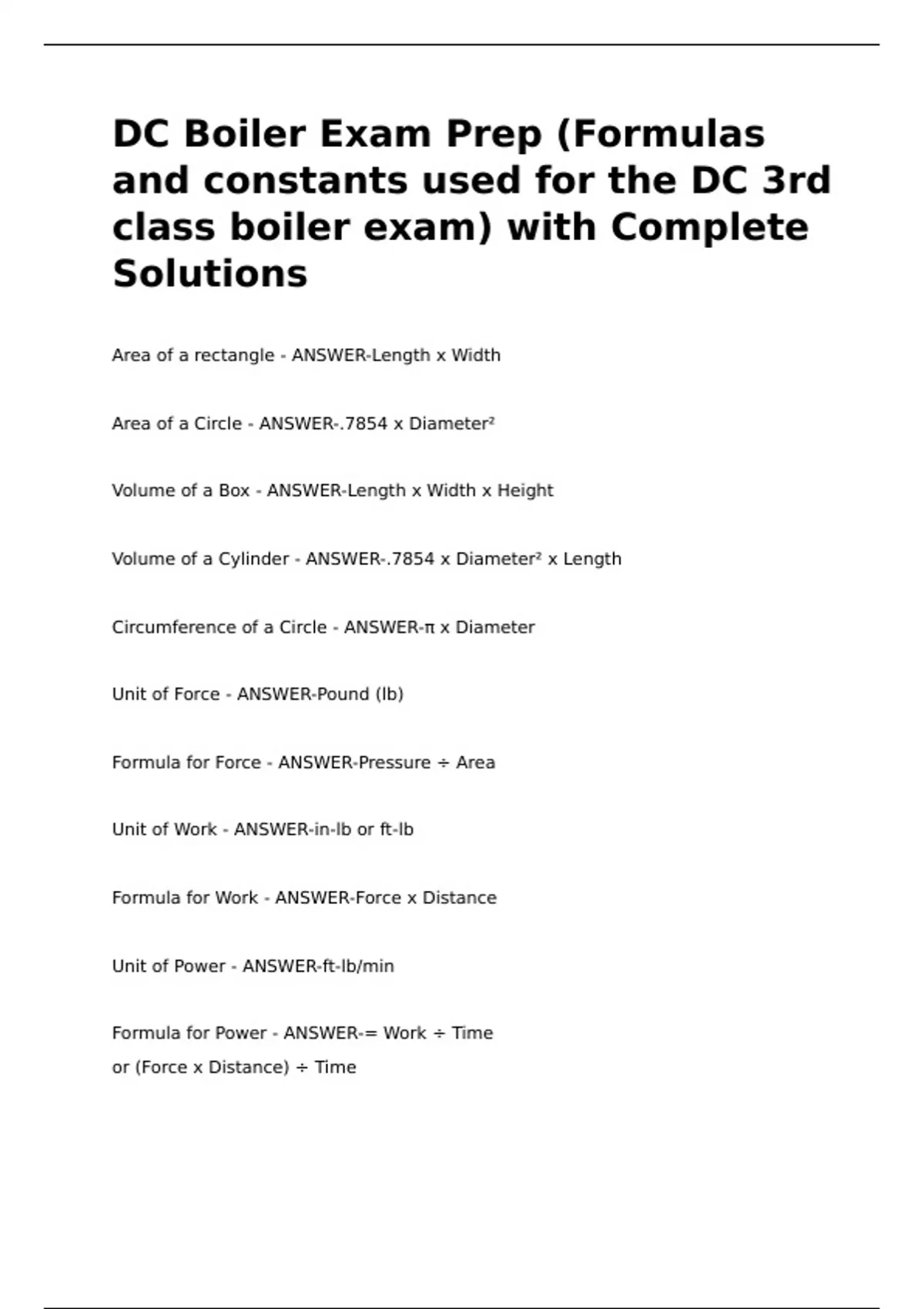 Formula for Power - ANSWER-= Work ÷ Time