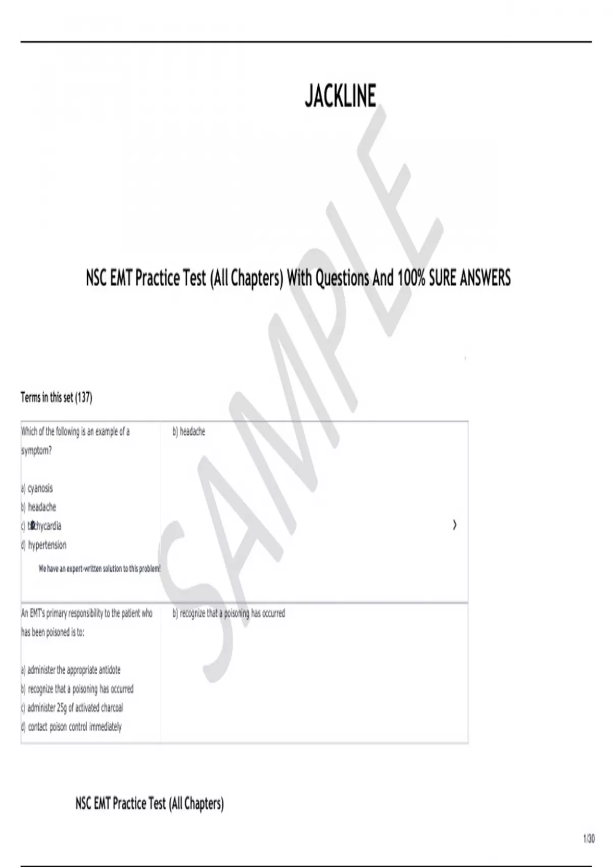 NSC EMT Practice Test (All Chapters) With Questions And 100% SURE ANSWERS