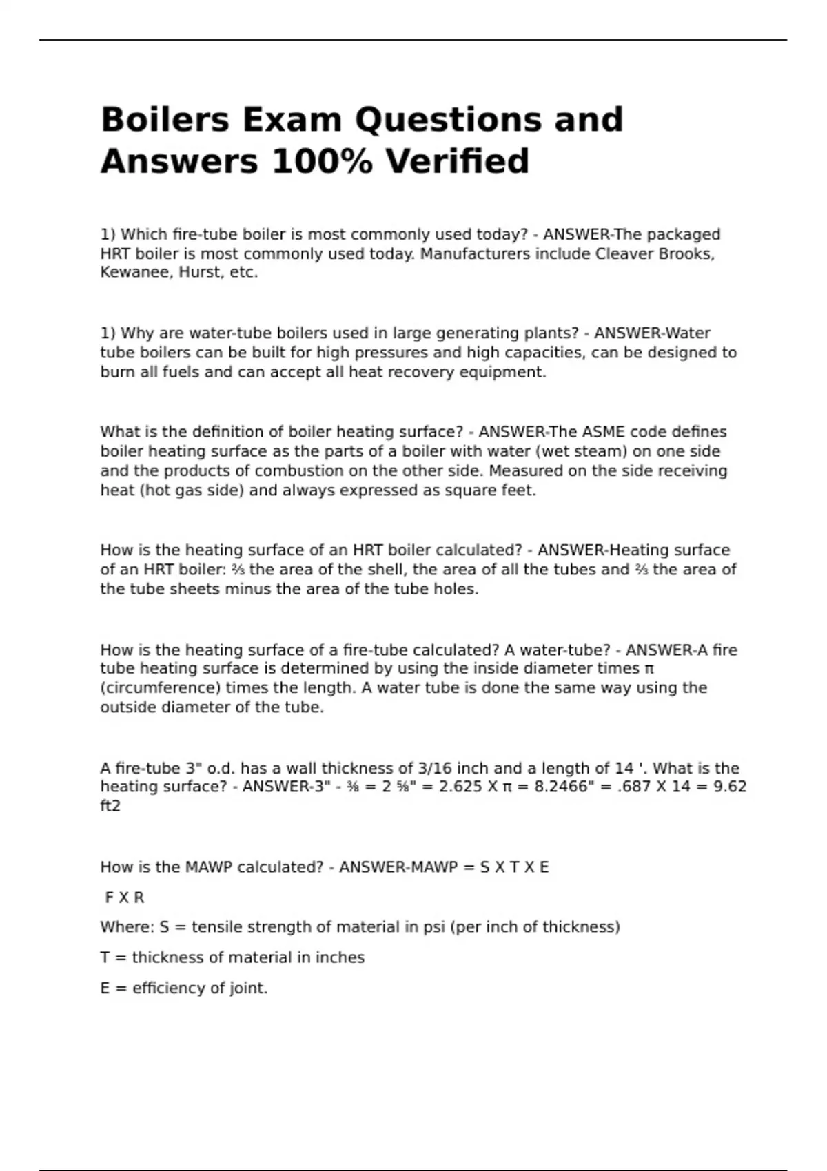 1) Which fire-tube boiler is most commonly used today? - ANSWER-The packaged