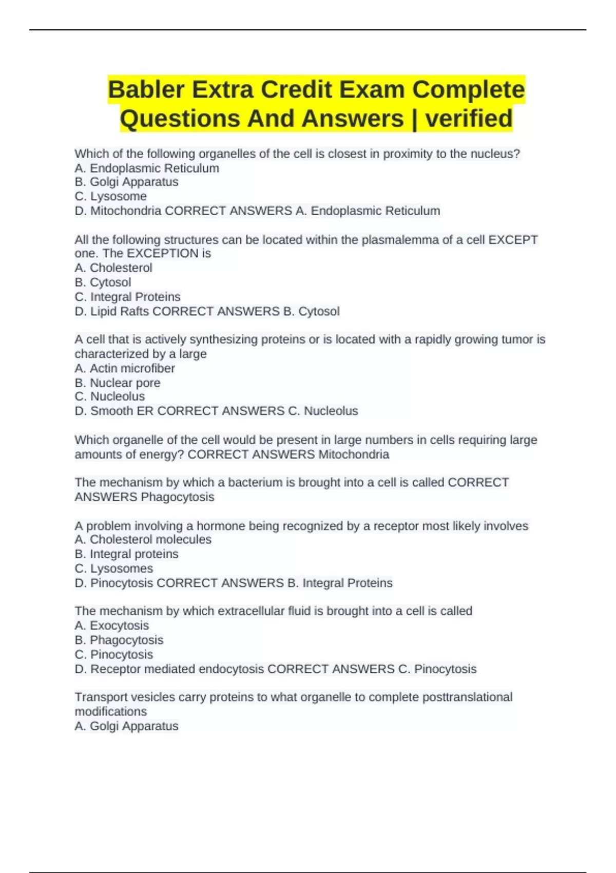 D. Mitochondria CORRECT ANSWERS A. Endoplasmic Reticulum