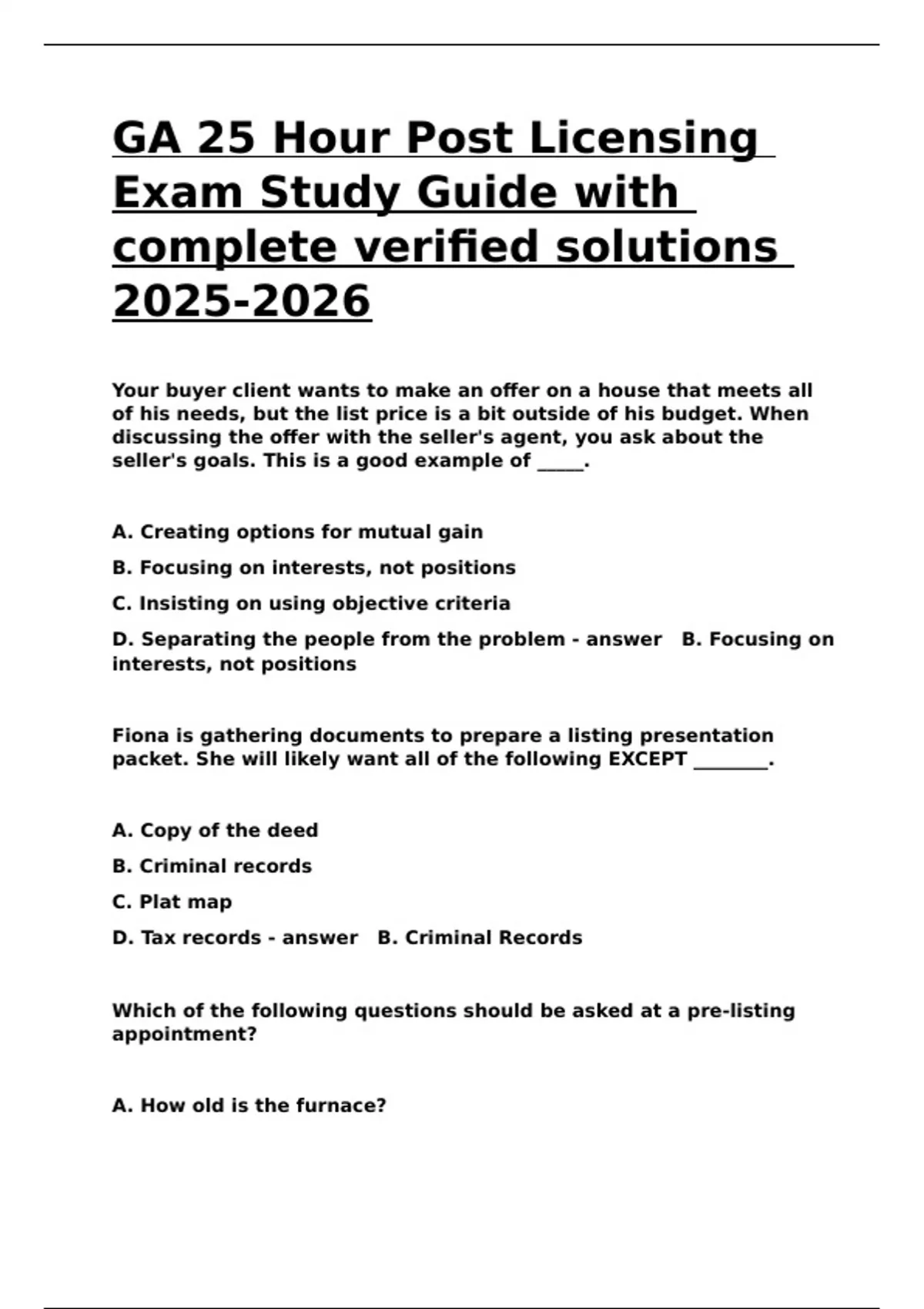 Which of the following questions should be asked at a pre-listing