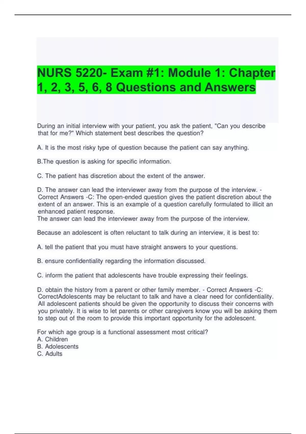 ,D. iOlder iadults i- iCorrect iAnswers i-D: iCorrectQuite isimply, ifunctional iassessment iis