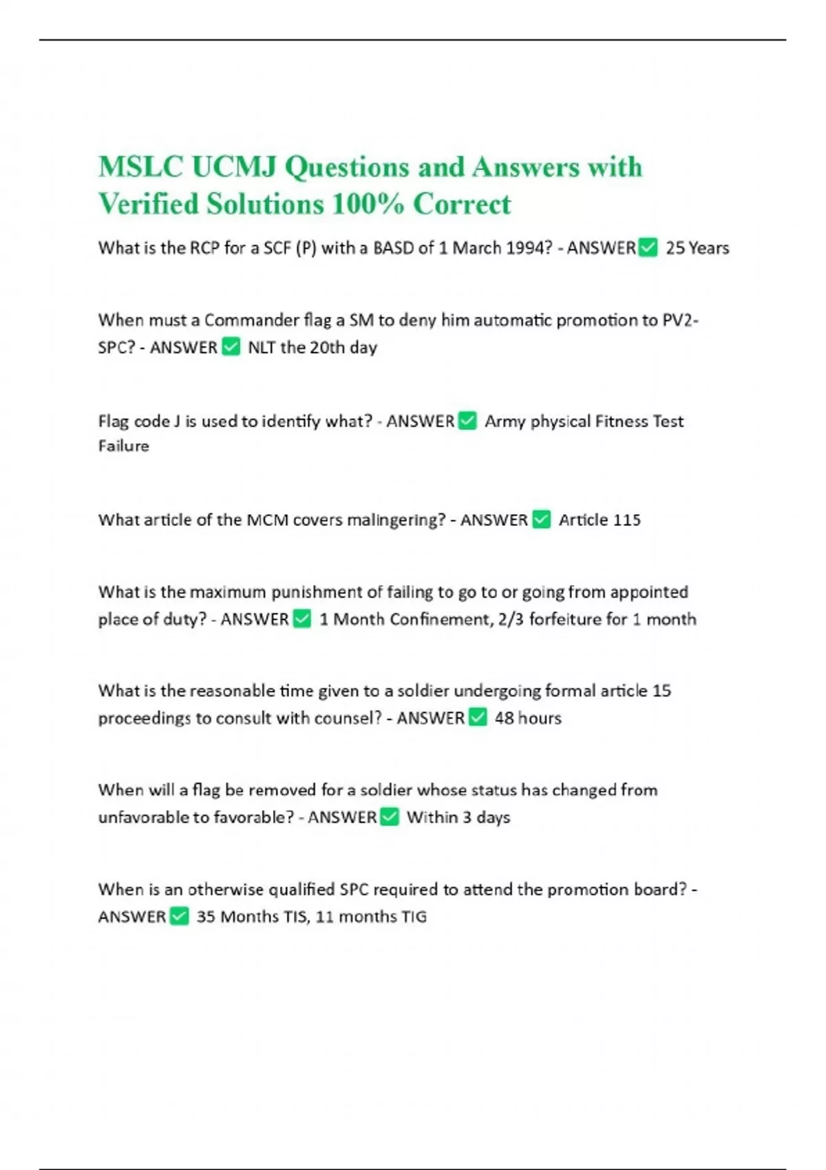 MSLC UCMJ Questions and Answers with Verified Solutions 100% Correct