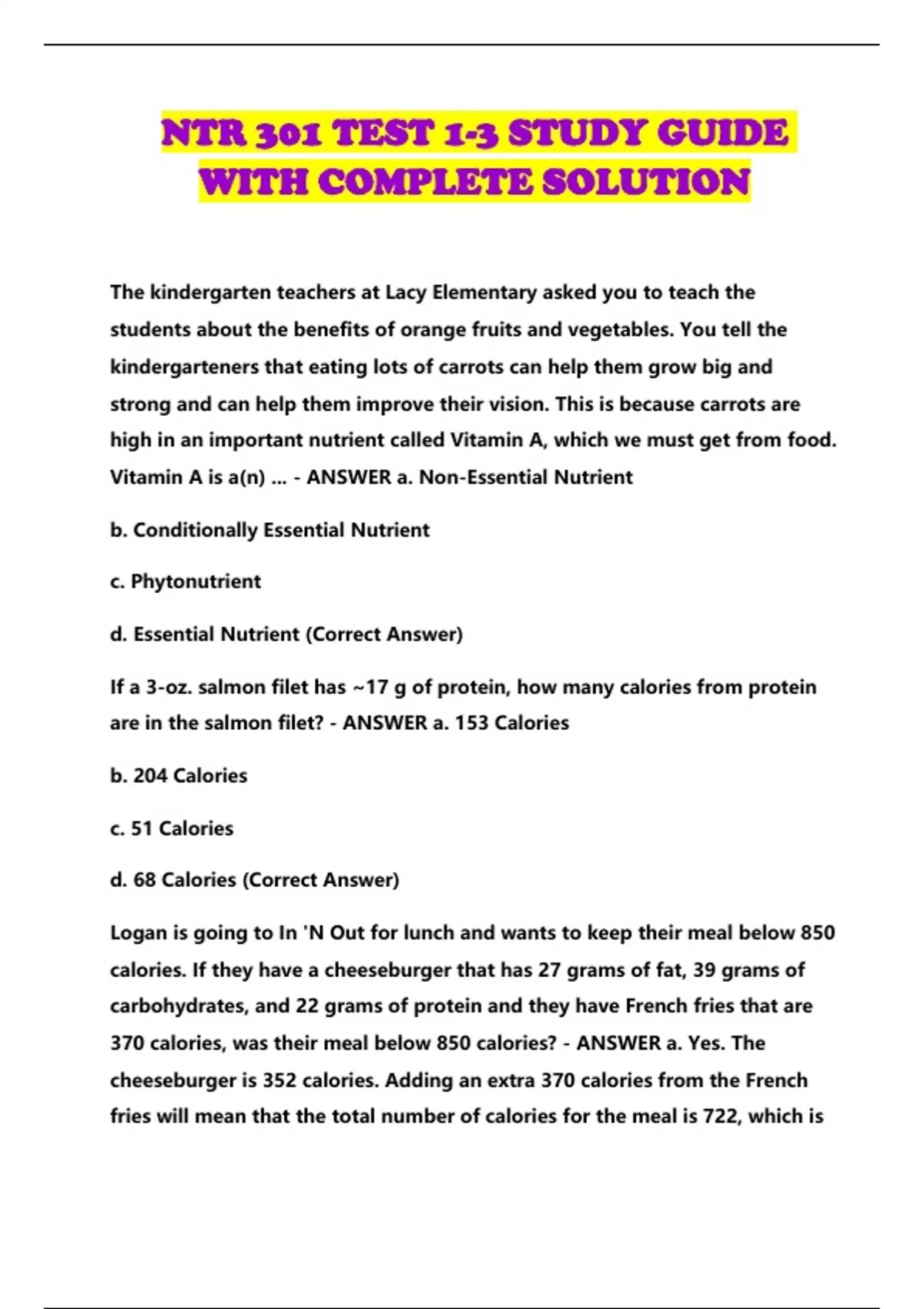 Vitamin A is a(n) ... - ANSWER a. Non-Essential Nutrient