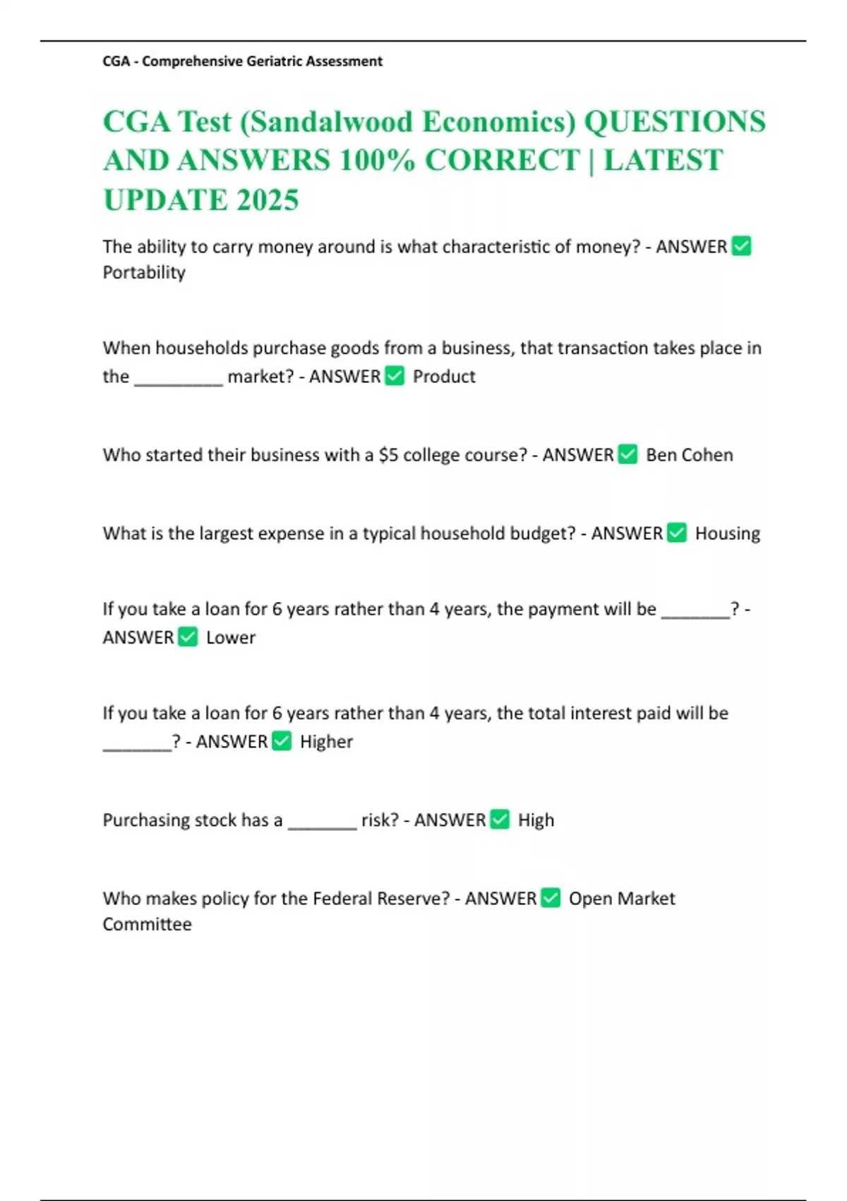 CGA Test (Sandalwood Economics) QUESTIONS