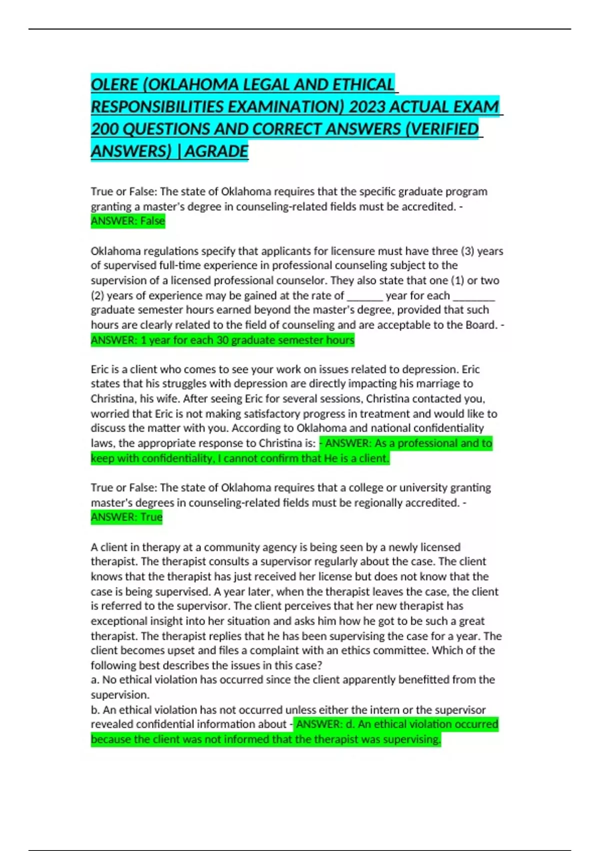 OLERE (OKLAHOMA LEGAL AND ETHICAL
