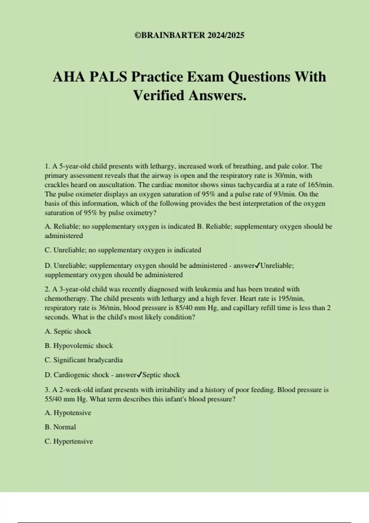 AHA PALS Practice Exam Questions With