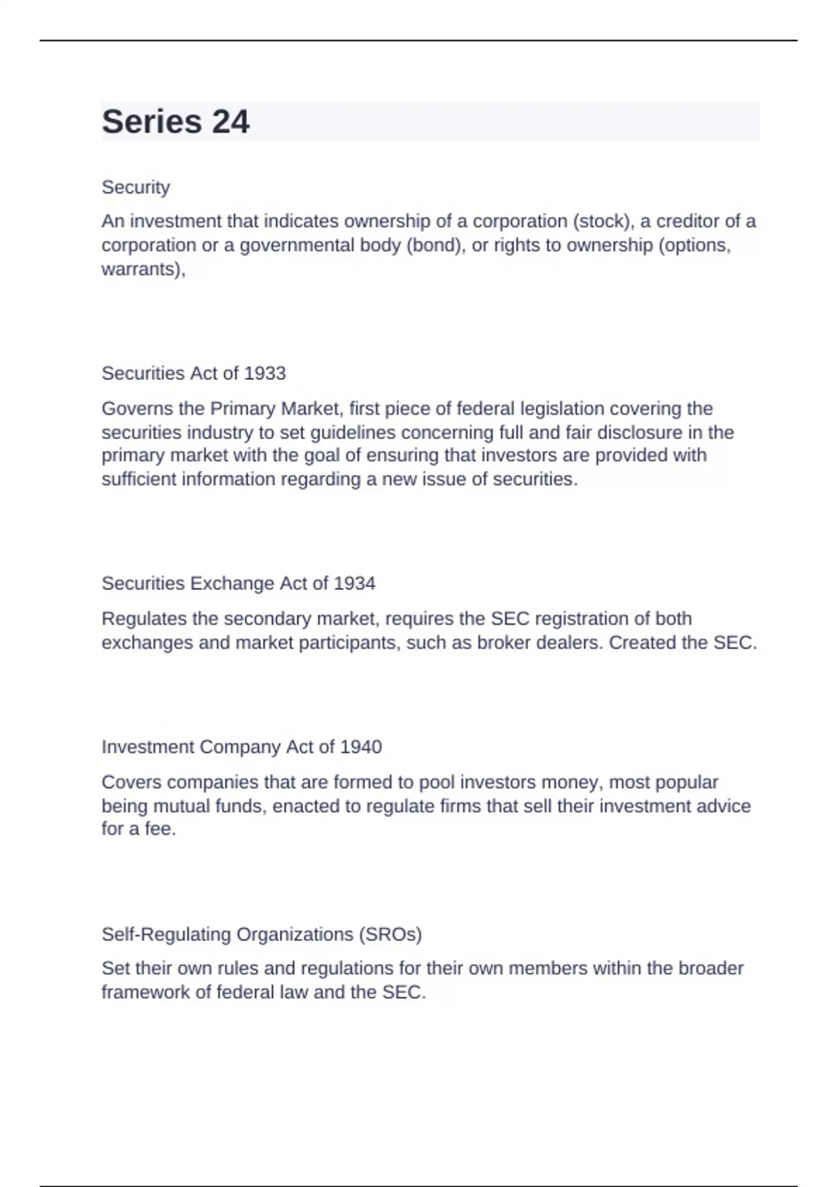 exchanges and market participants, such as broker dealers. Created the SEC.