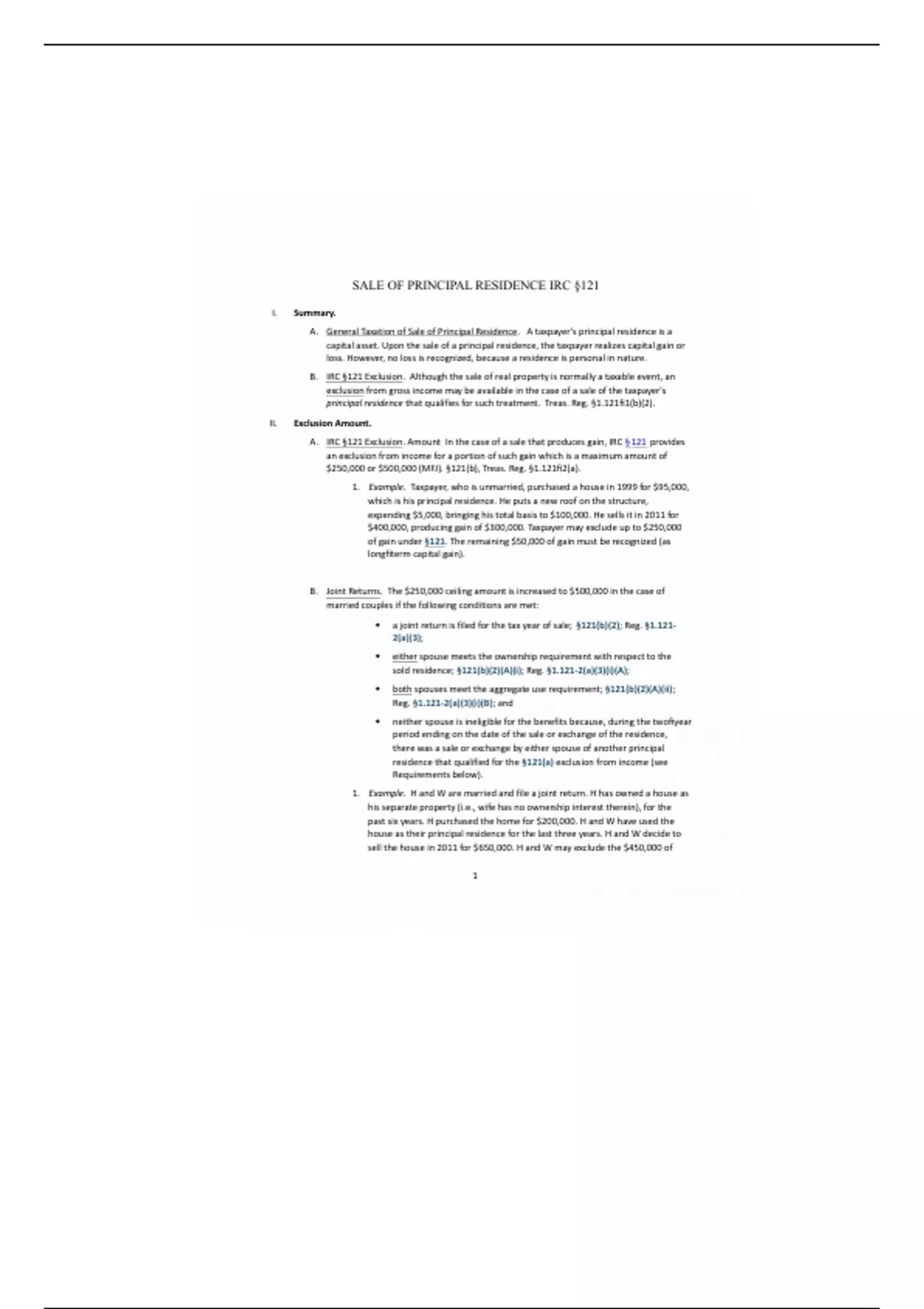 A. General Taxation of Sale of Principal Residence. A taxpayer's principal residence is a